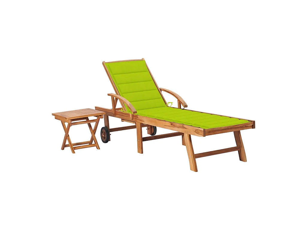 Bain de soleil avec table et coussin Bois de teck solide PEWV17968