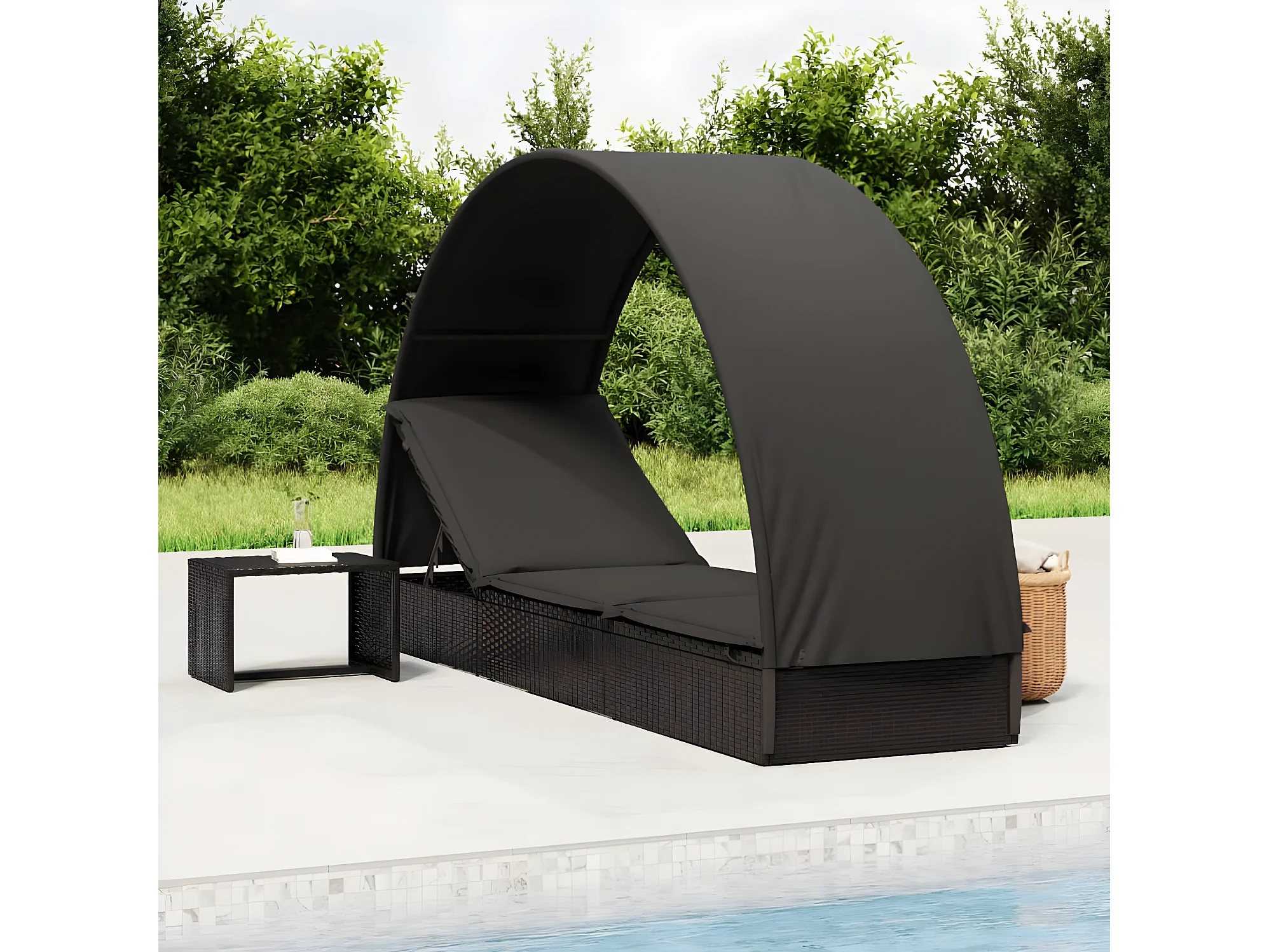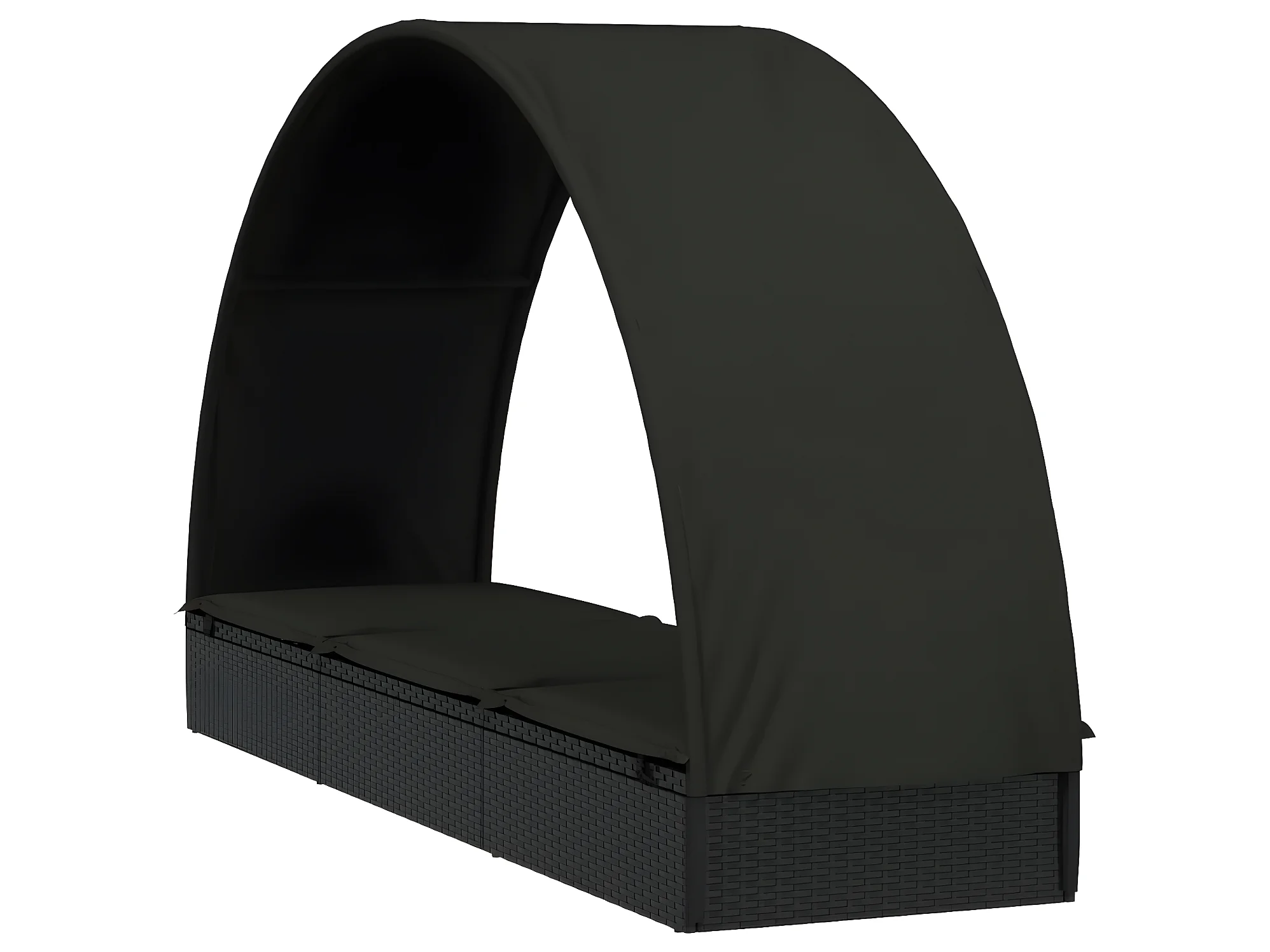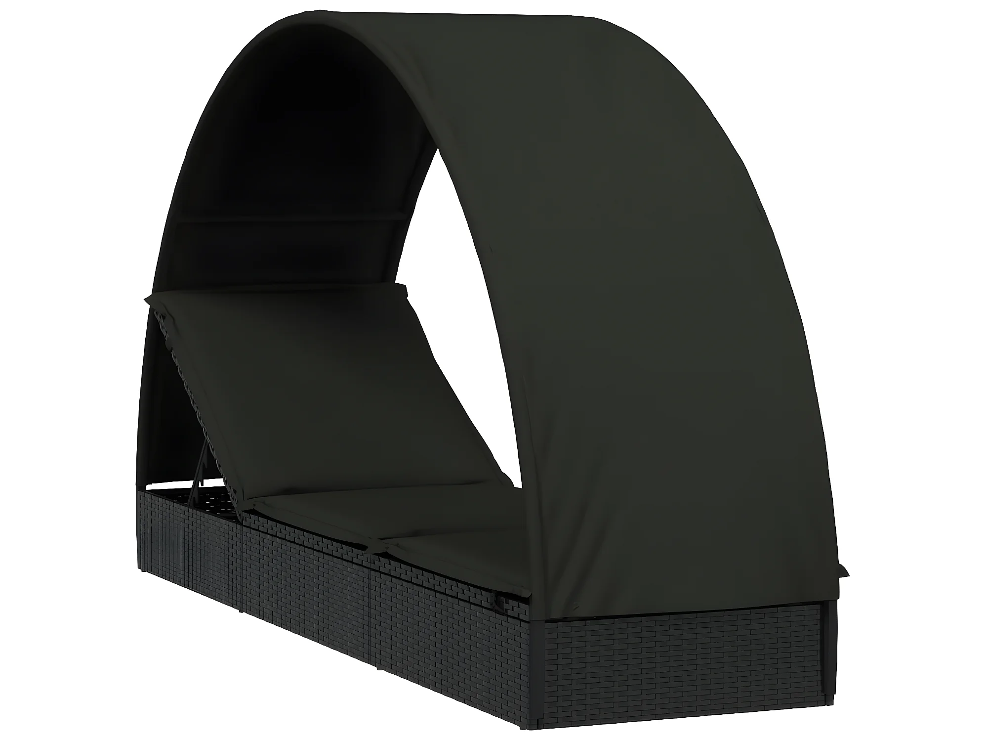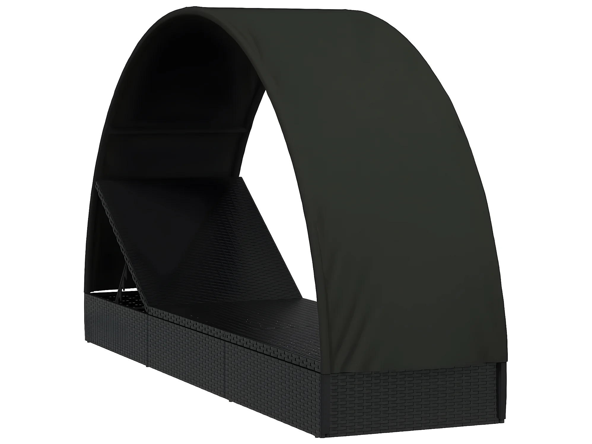 Bain de soleil avec toit rond noir 211x57x140 cm résine tressée SEF36871
