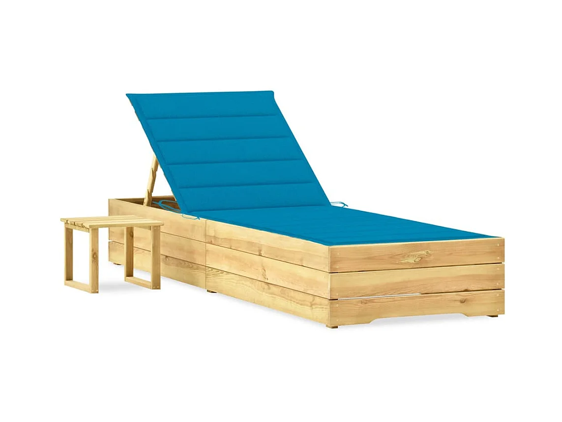 Bain de soleil de jardin avec table et coussin Pin imprégné SEF62484