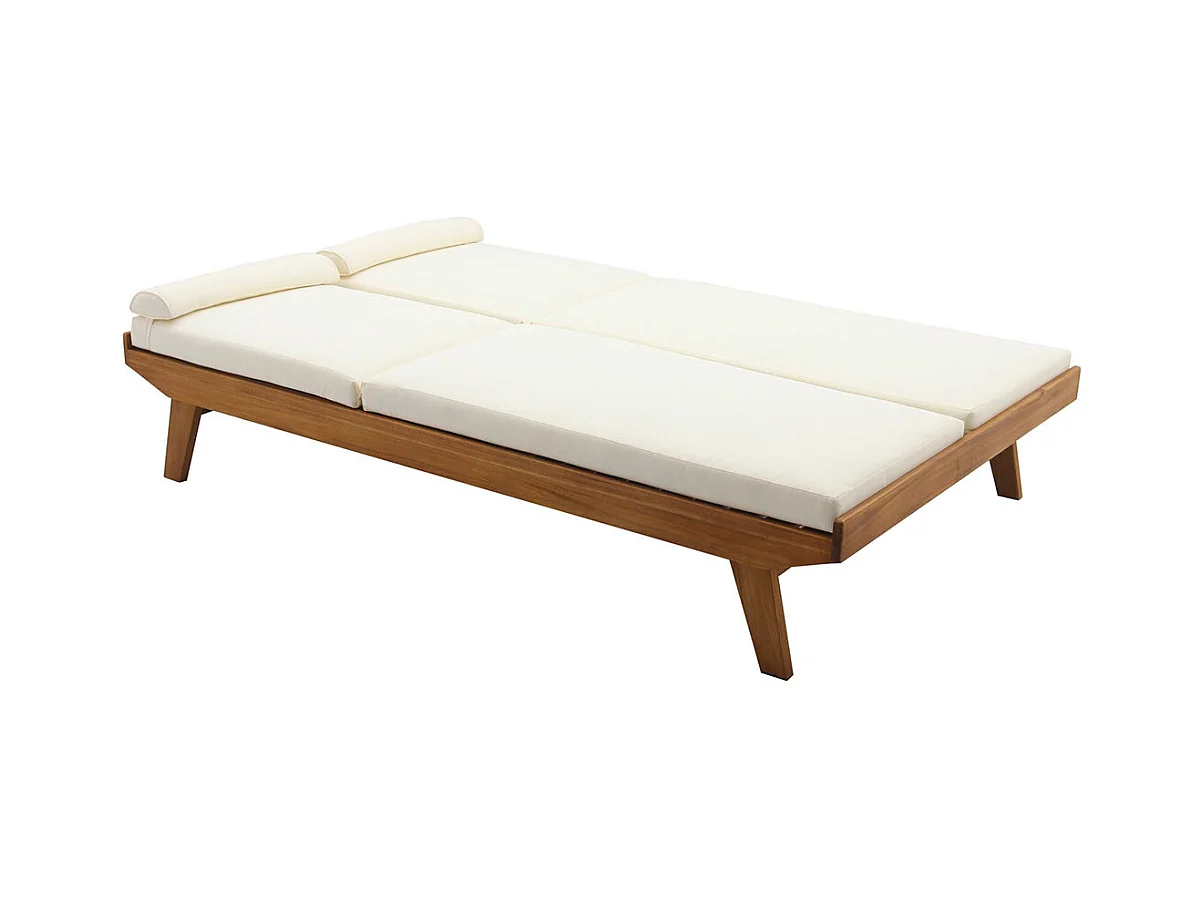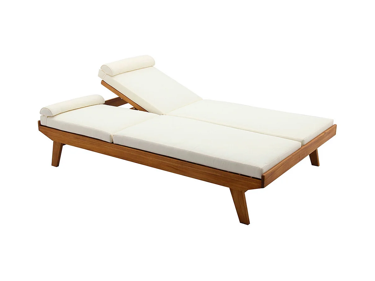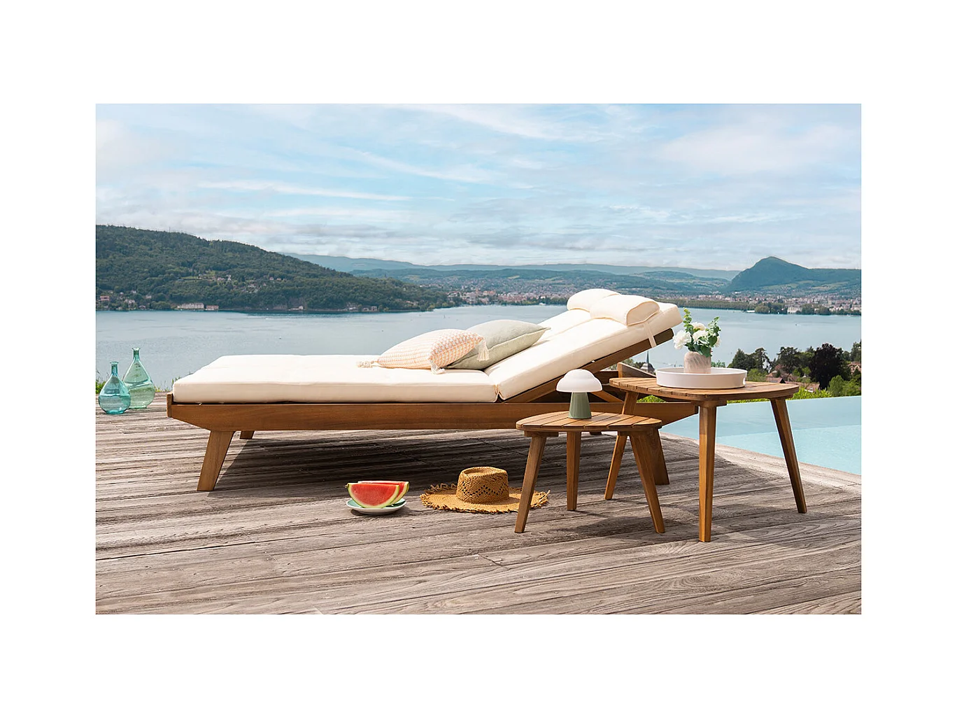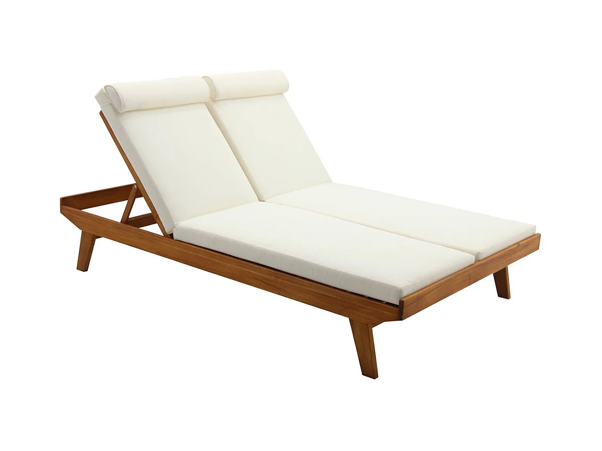 Bain de soleil double avec dossiers multipositions beige et bois massif L127 cm CARACAS