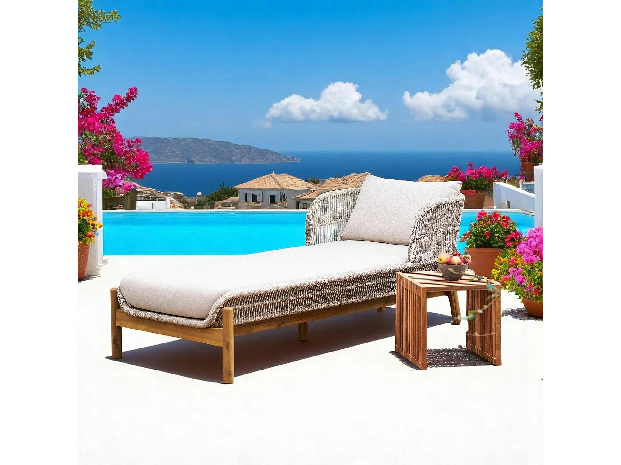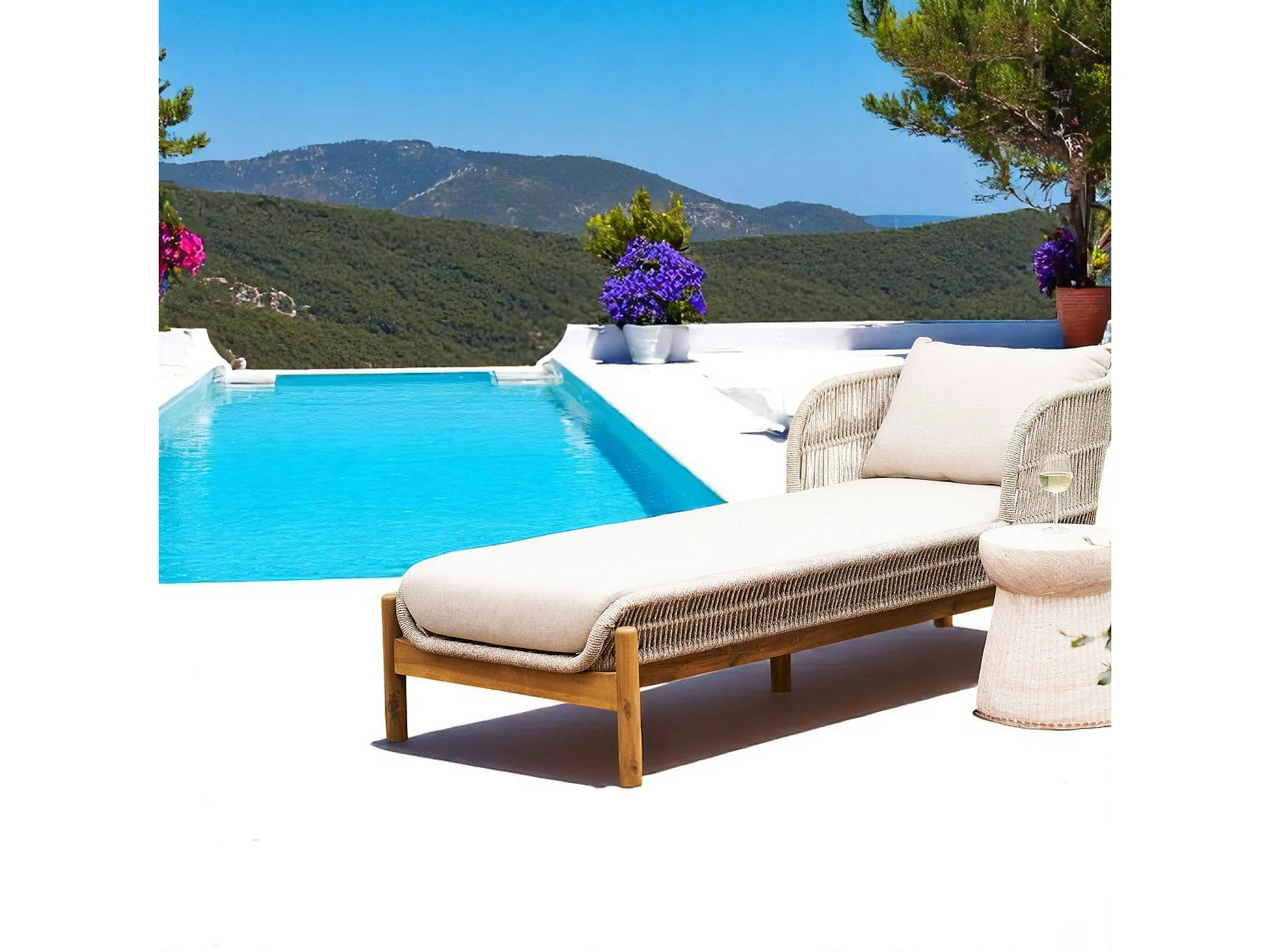Bain de soleil en bois d'acacia et corde avec dossier montant MENDOZA
