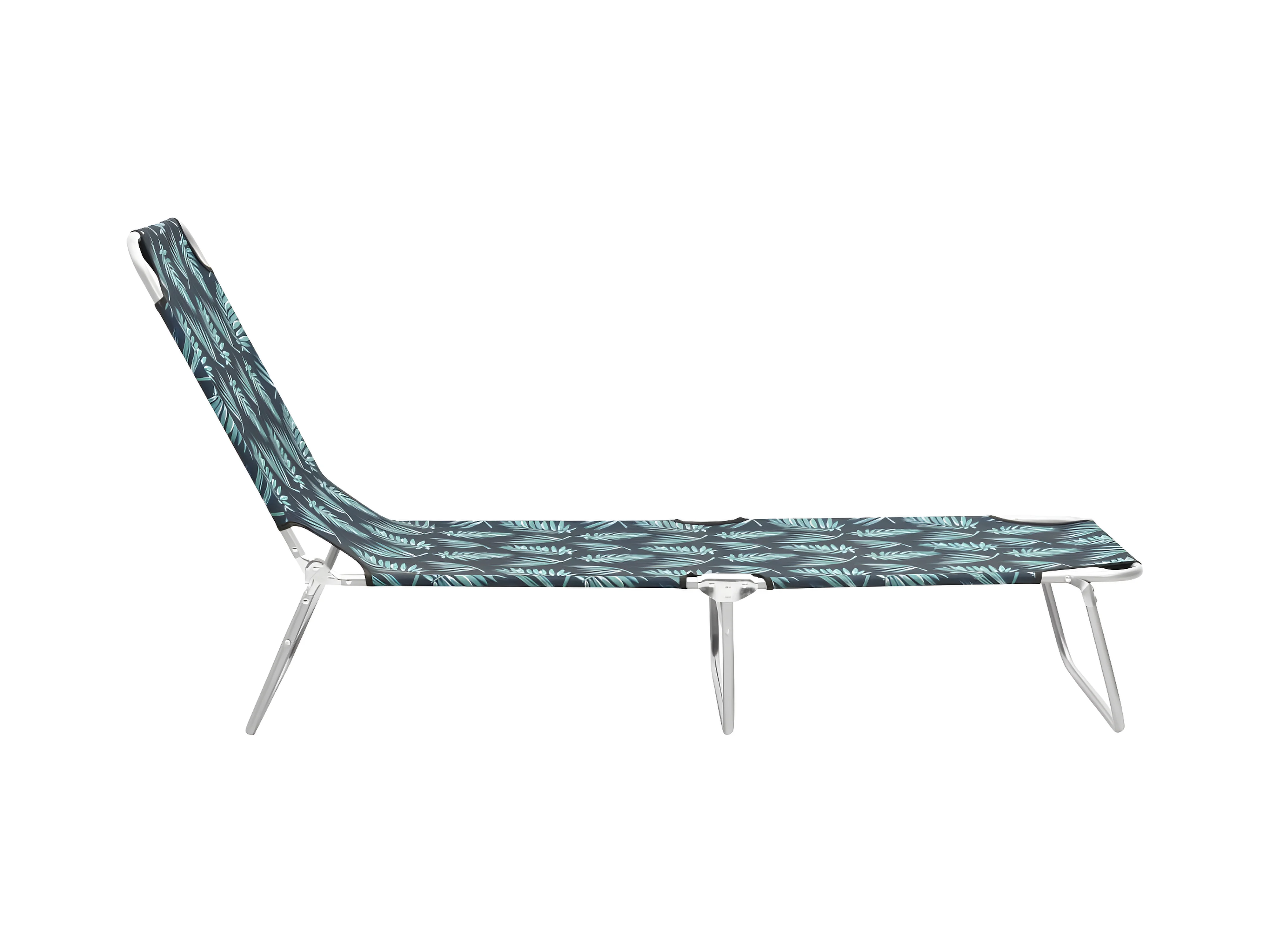 Bain de soleil pliable acier et tissu motif de feuilles FR10092