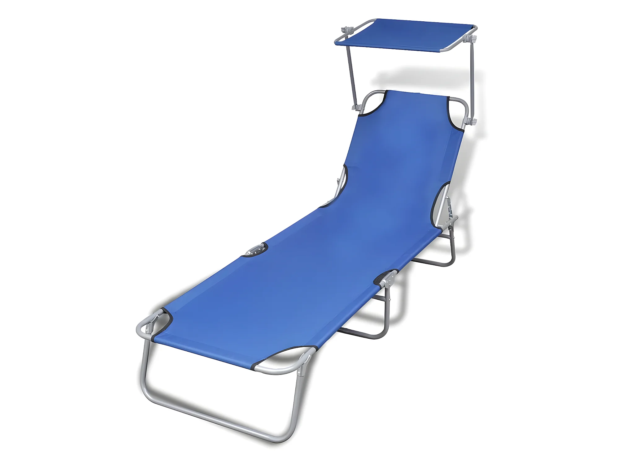 Bain de soleil pliable avec auvent Acier et tissu Bleu SEF75169