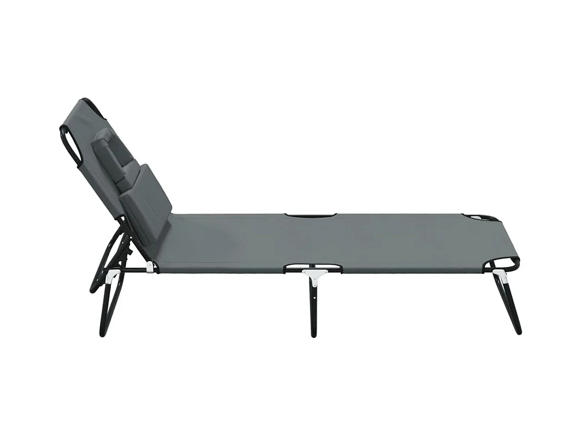 Bain de soleil pliable et coussin de tête Dossier réglable Gris FR11905