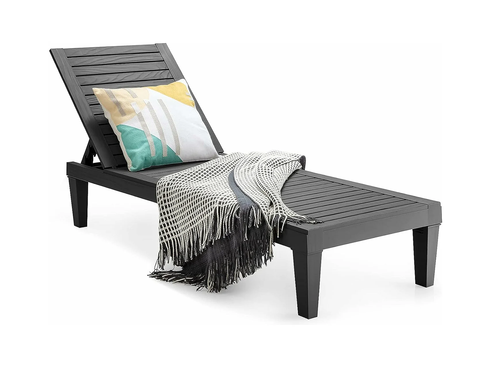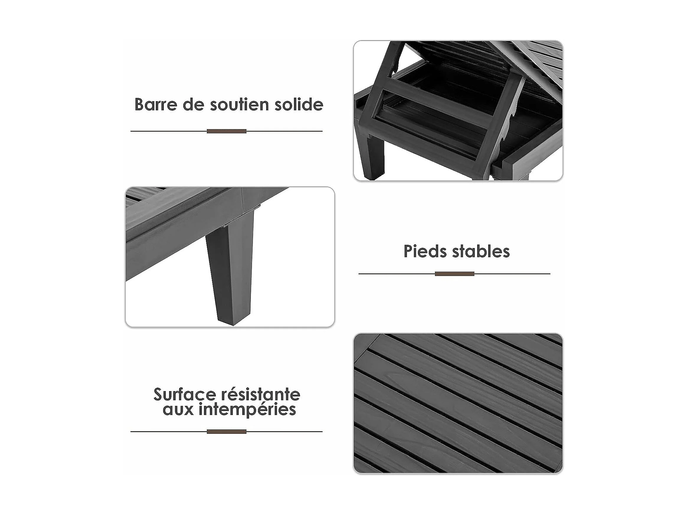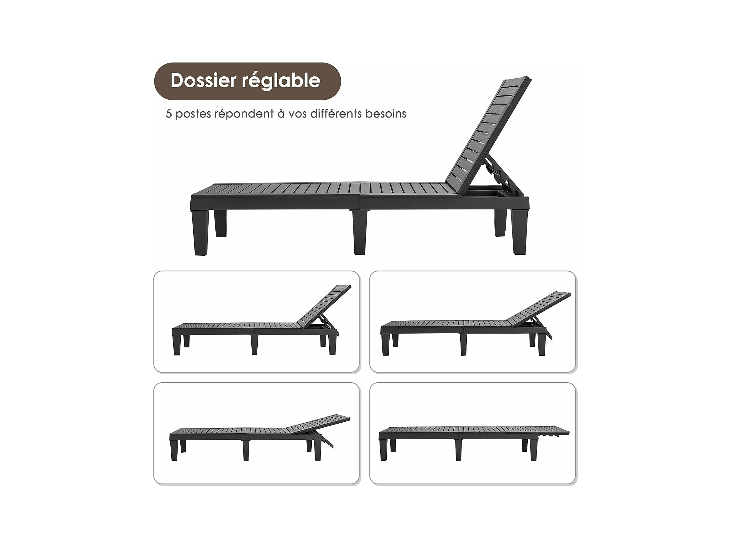Bain de Soleil Inclinable Chaise Longue Dossier Réglable sur 5 Positions Charge 180KG Résistante aux Intempéries pour Plage Noir