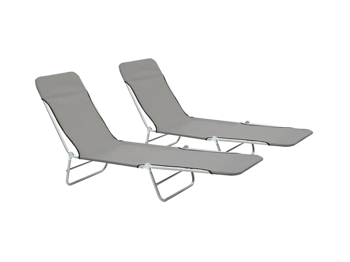 Bains de soleils pliables 2 pcs Acier et tissu Gris SEF78346