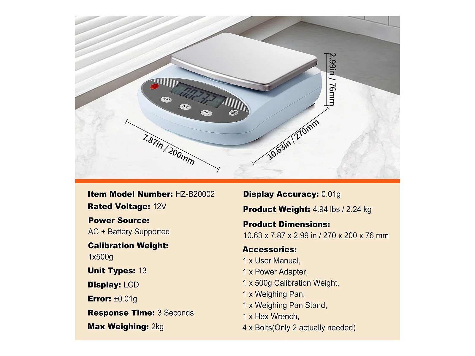 Balance de Laboratoire Analytique SucceBuy, 2000g x 0,01 g, 13 Unités, Électronique