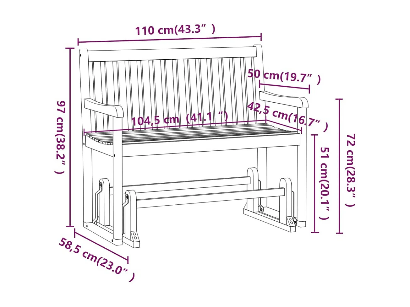 Balancelle de jardin 110cm Bois d'acacia solide