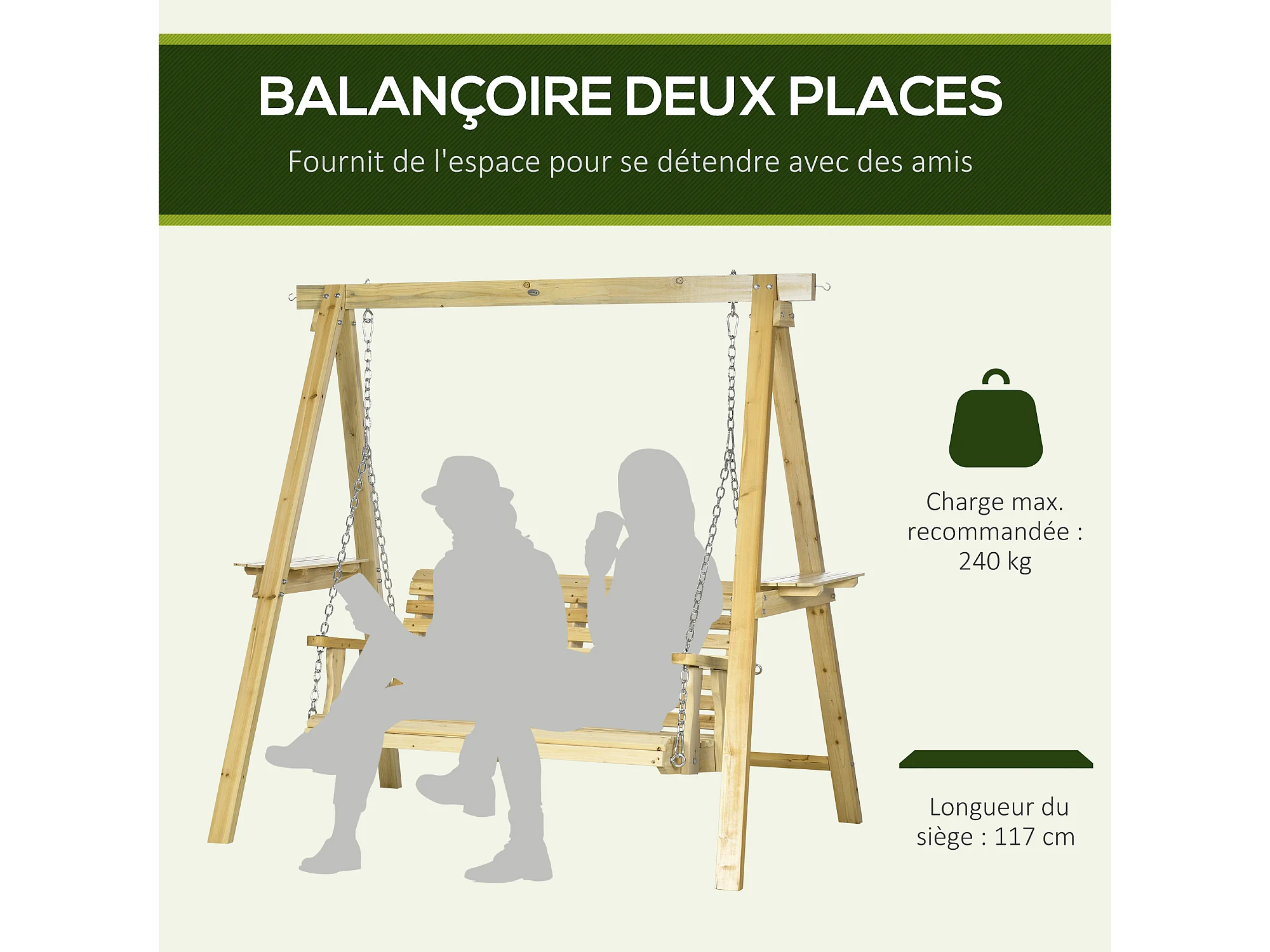 Balancelle de jardin 2 places en bois hauteur réglable - 196 x 120 x 171 cm