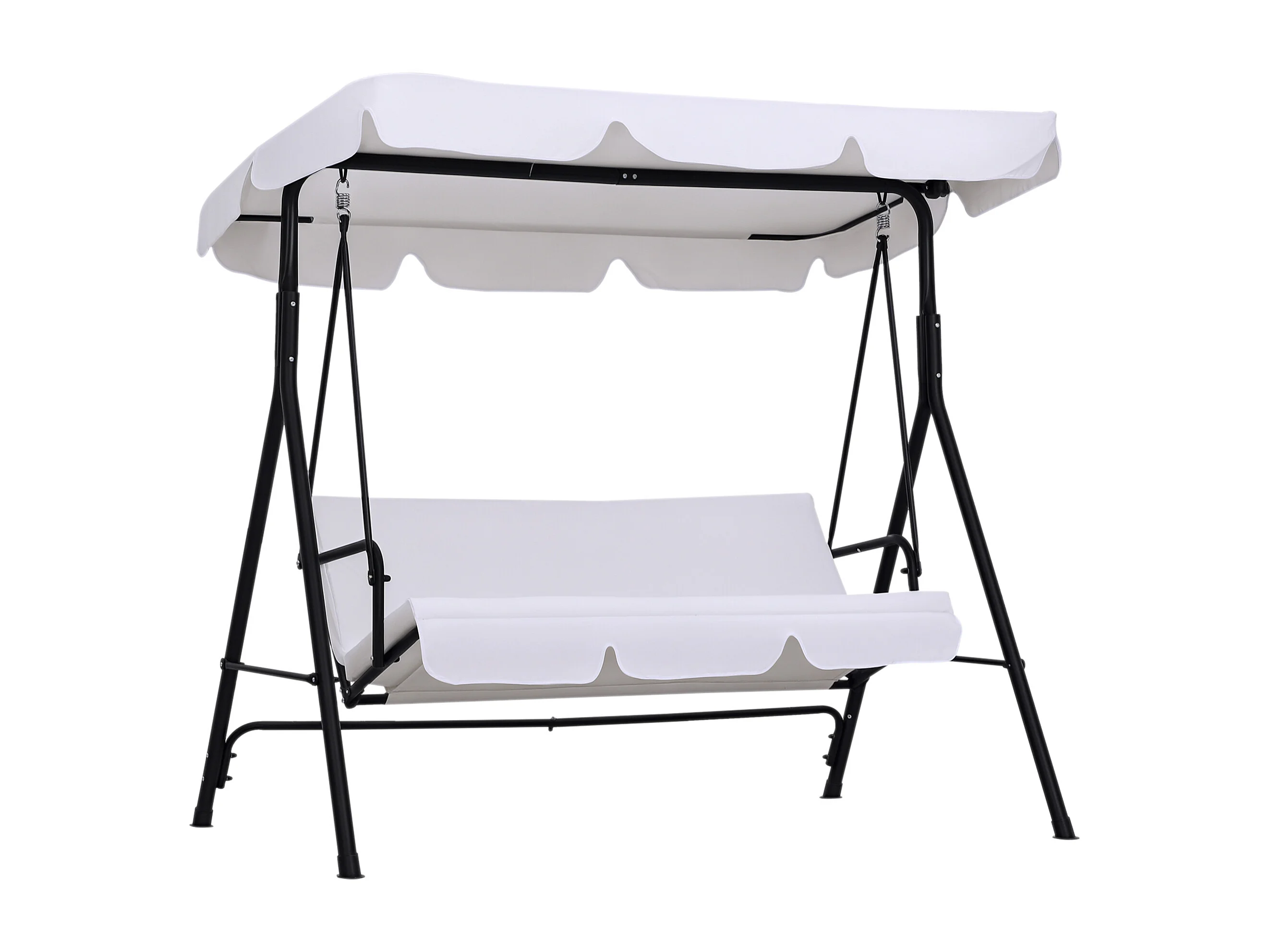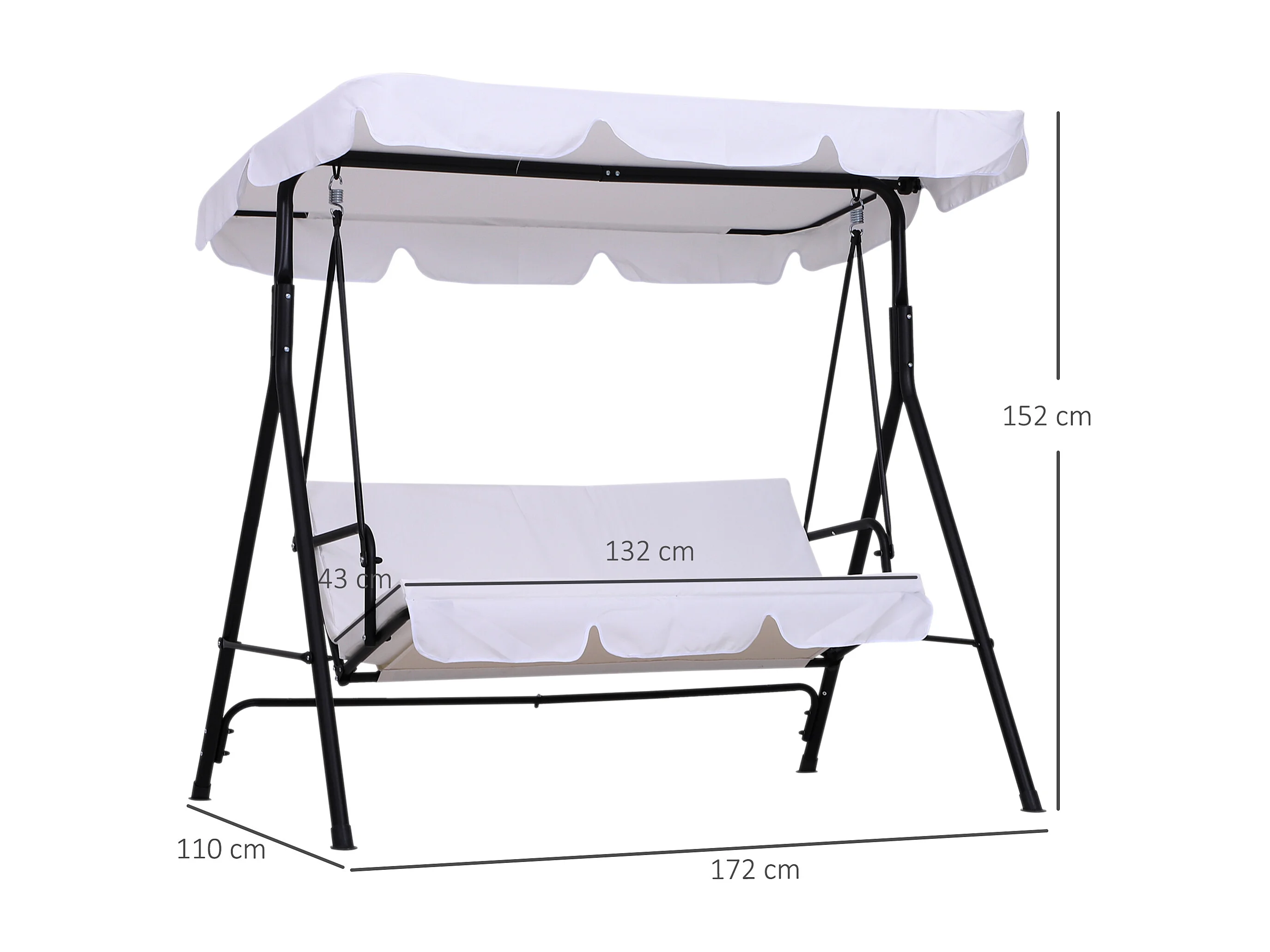 Balancelle de jardin 3 places toit inclinaison réglable coussins assise et dossier 1,72L x 1,1l x 1,52H m acier noir polyester blanc