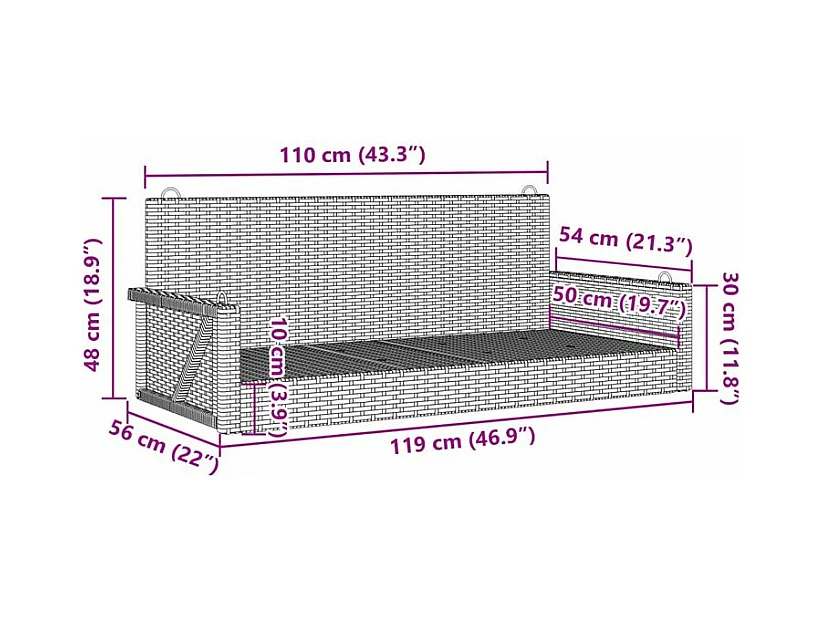 Balancelle marron 119x56x48 cm résine tressée FR702378