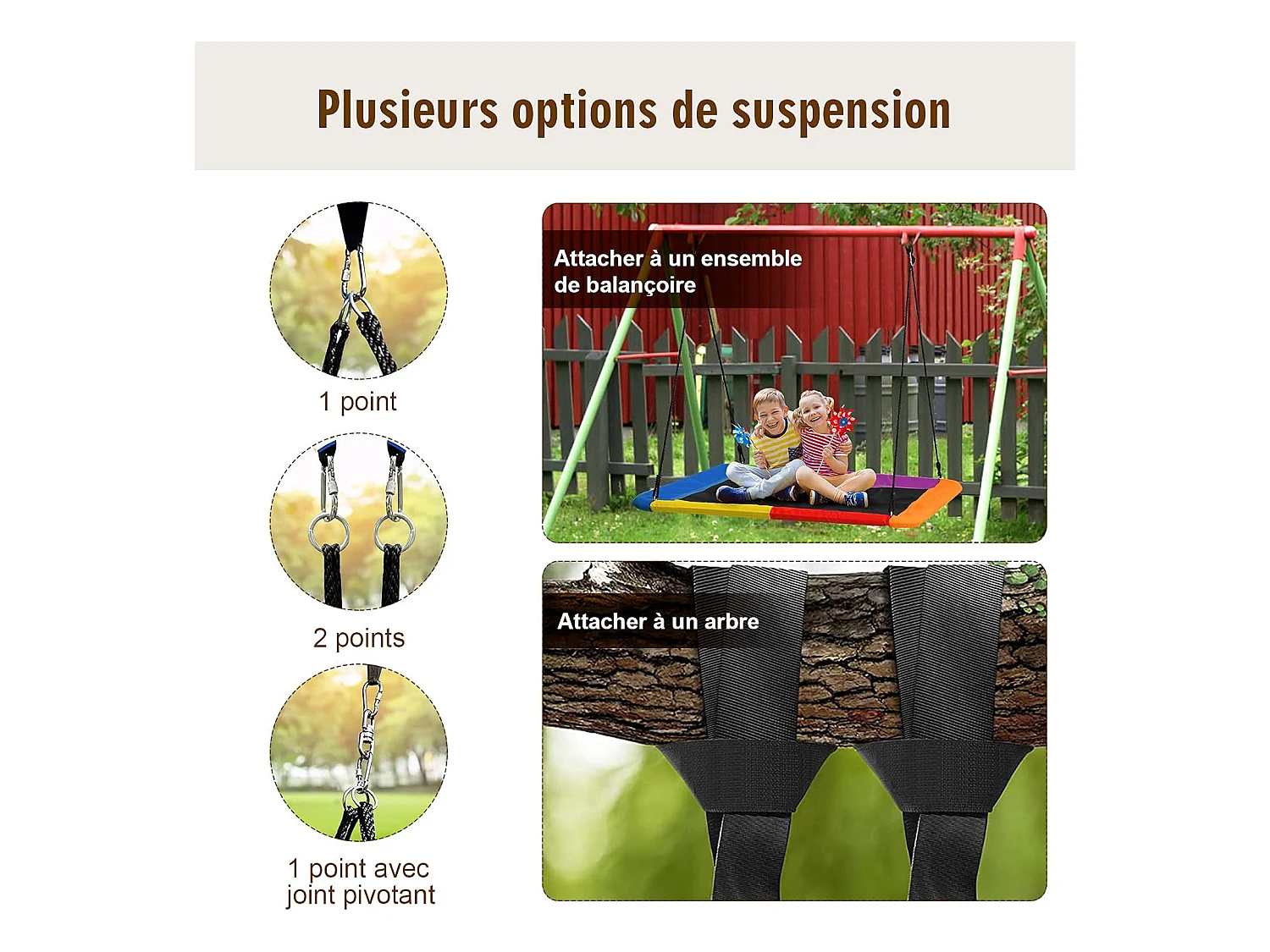 Balançoire Nid d’Oiseau Rond 100CM de Diamètre pour Arbre avec Sangle de Suspension Charge Max 150 KG Extérieur Multicolore