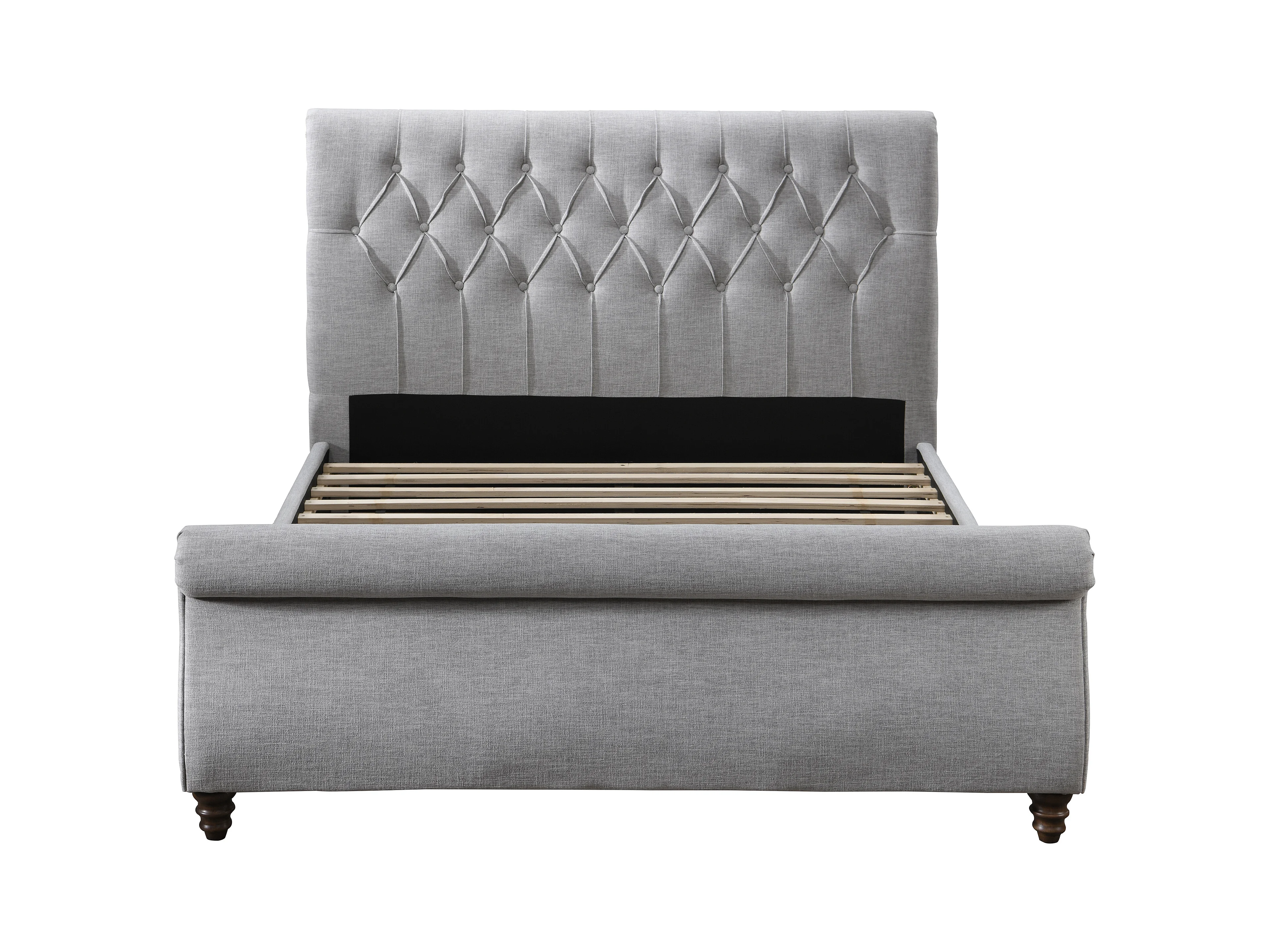Lit 160 x 200 cm avec tête de lit capitonnée - Gris + Matelas - BALANSANO