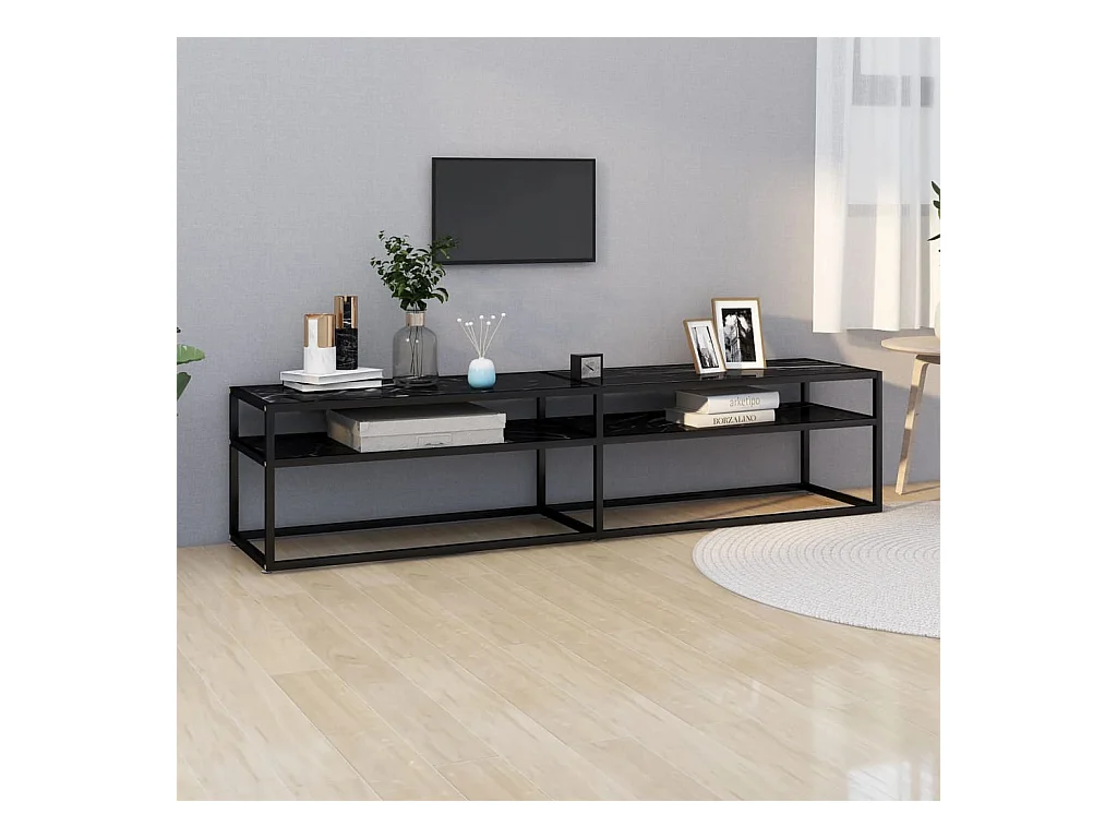 Ballypatrick Meuble TV marbre noir 180x40x40,5 cm verre trempé