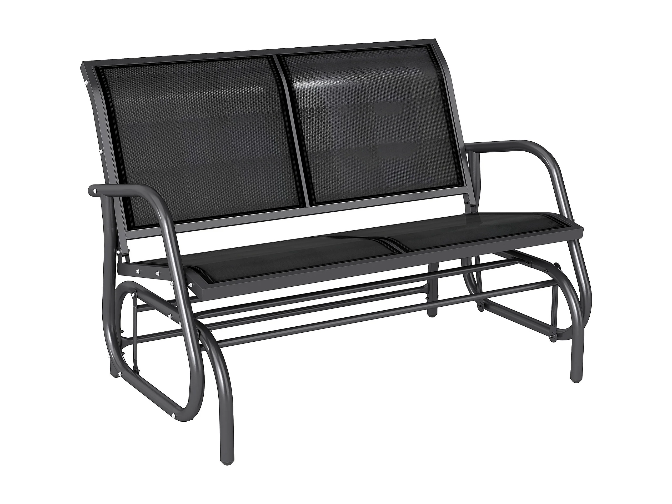 Banc à bascule de jardin 2 places design contemporain grand confort accoudoirs assise et dossier ergonomique acier textilène noir