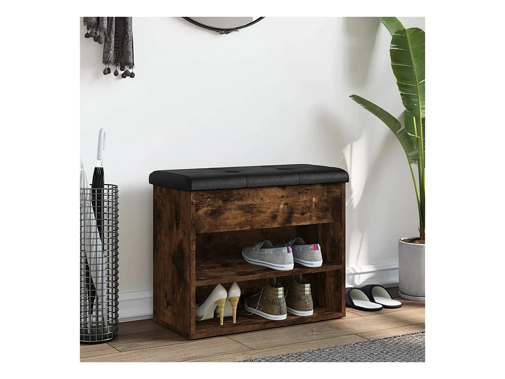Banc à chaussures chêne fumé 62x32x50 cm bois d'ingénierie REO37955