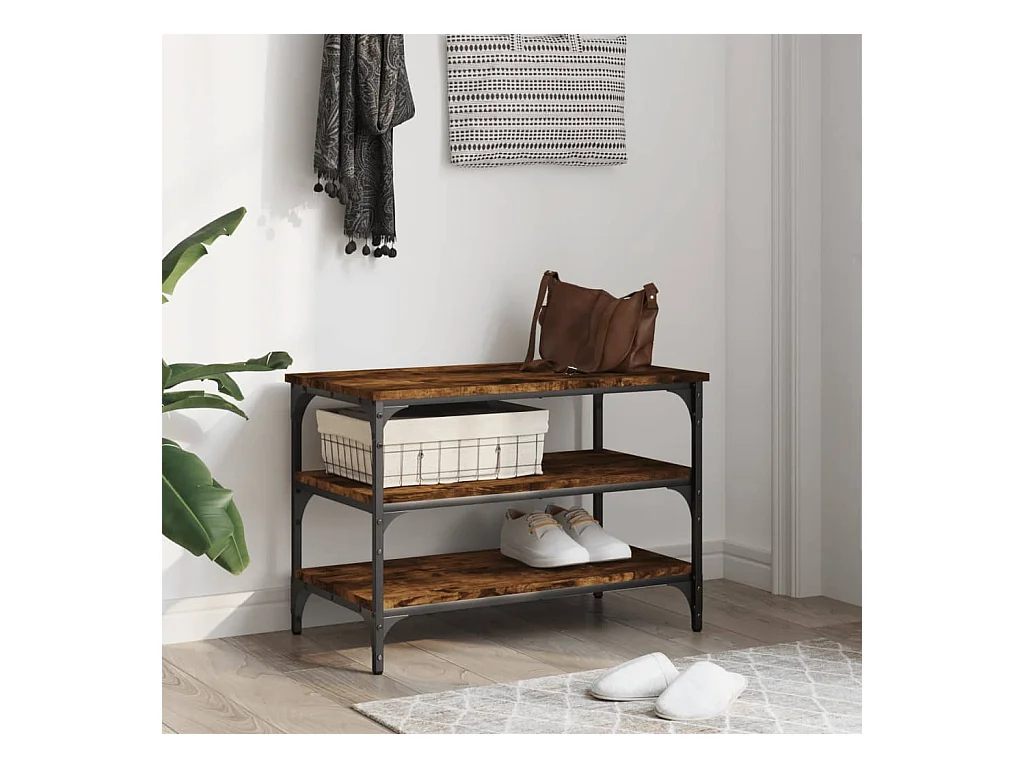 Banc à chaussures chêne fumé 70x42,5x50 cm bois d'ingénierie REO70793