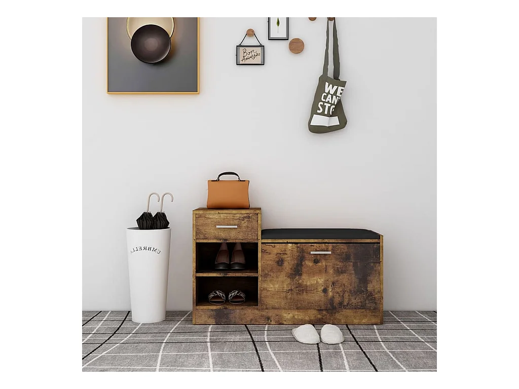 Banc à chaussures chêne fumé bois d'ingénierie et métal