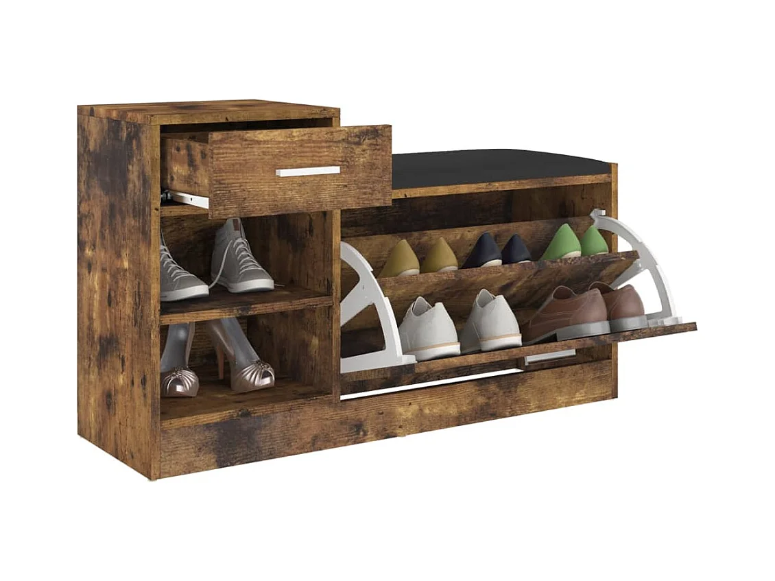 Banc à chaussures Chêne fumé 94,5x31x57 cm Bois d'ingénierie