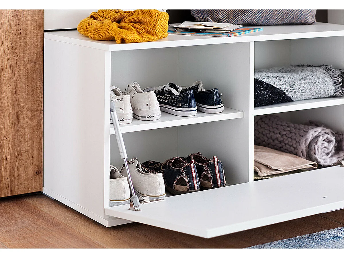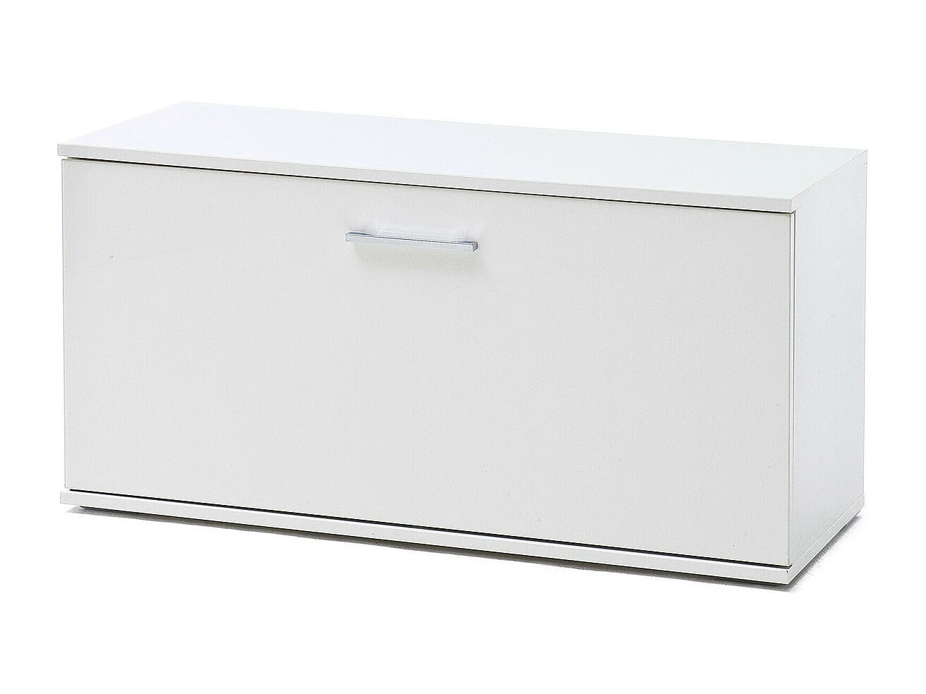 Banc à chaussures finition laquée blanc mat - Longueur 90 x Hauteur 47 x Profondeur 38 cm