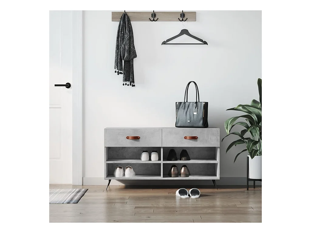 Banc à chaussures gris béton 102x30,5x45 cm bois d'ingénierie