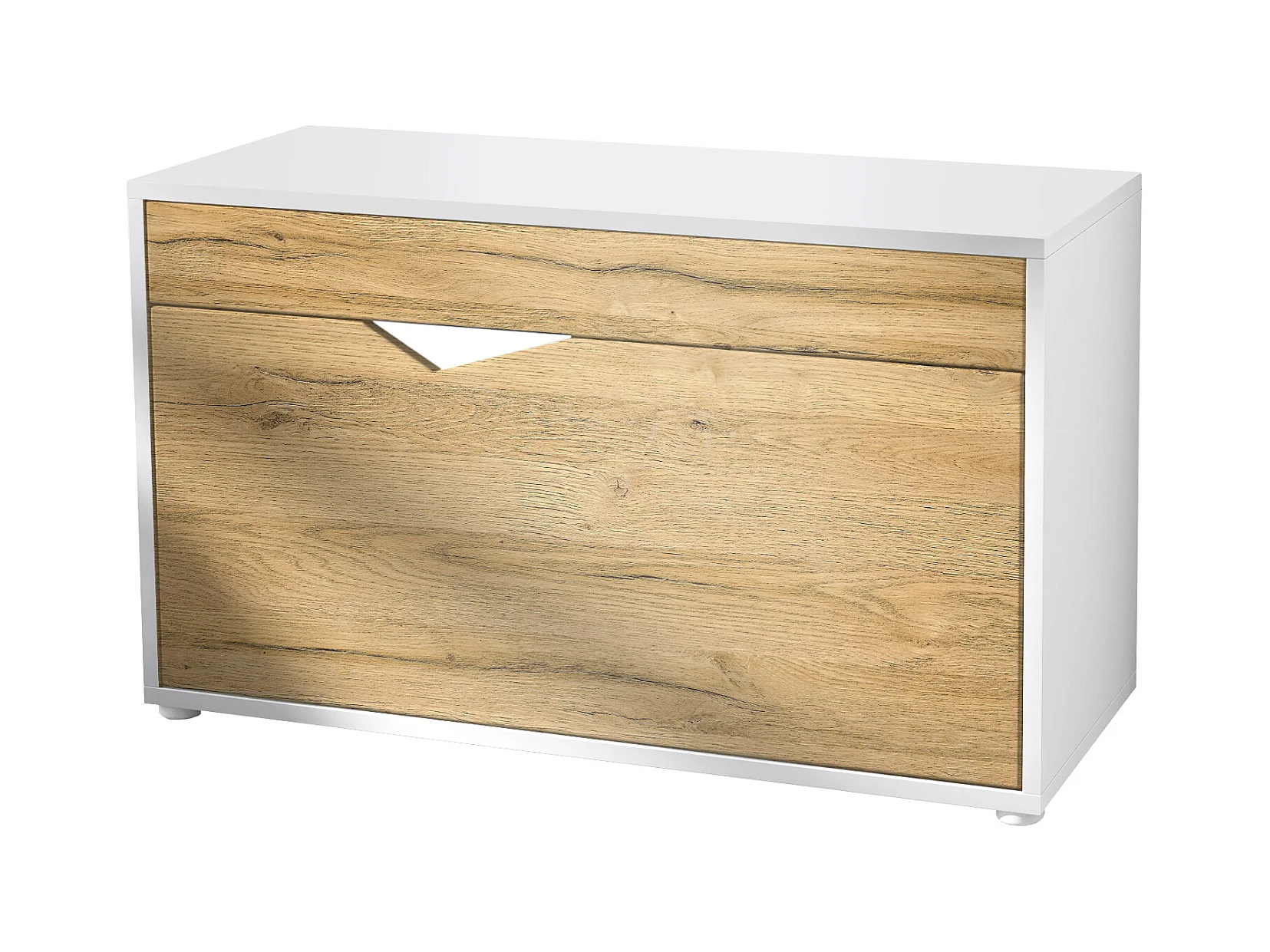 Banc à Chaussures Kolmio, Banc d'Assise pour 8 Paires de Chaussures, Étagère à Chaussures avec Siège, blanc mat/chêne nature (85 x 50 x 33 cm)