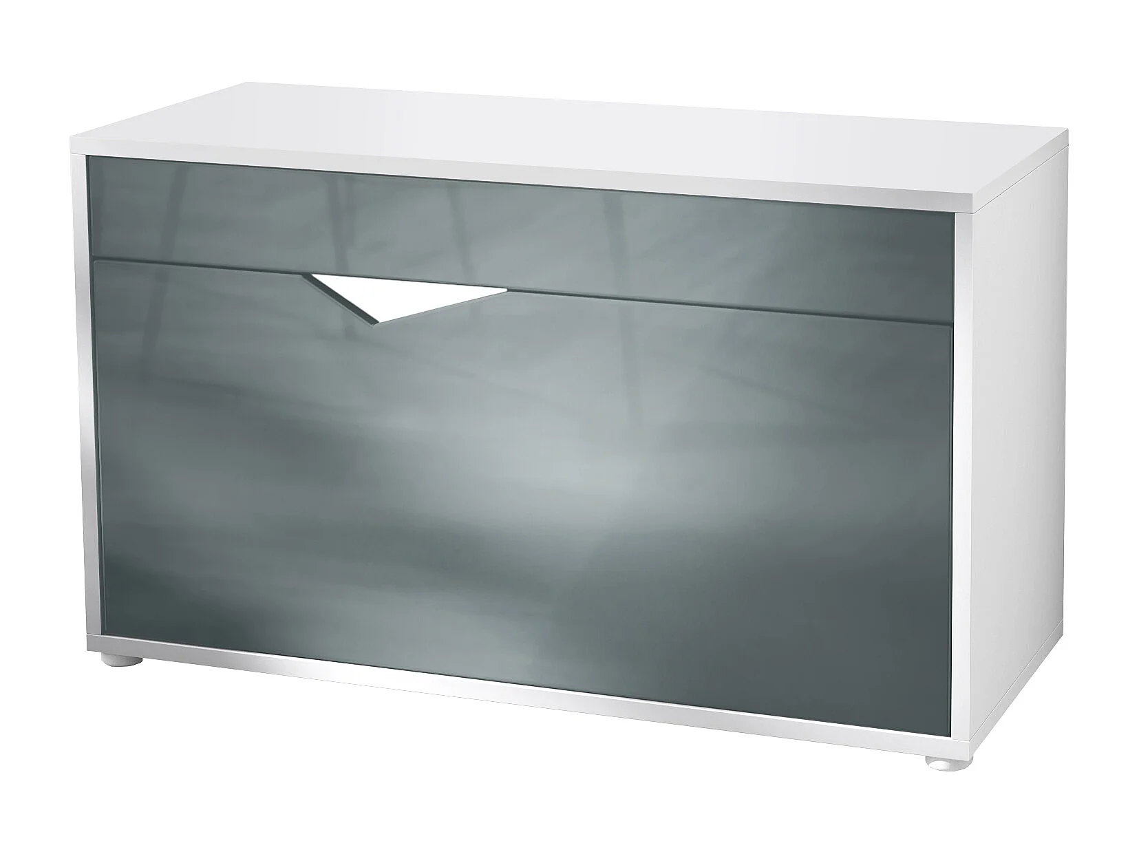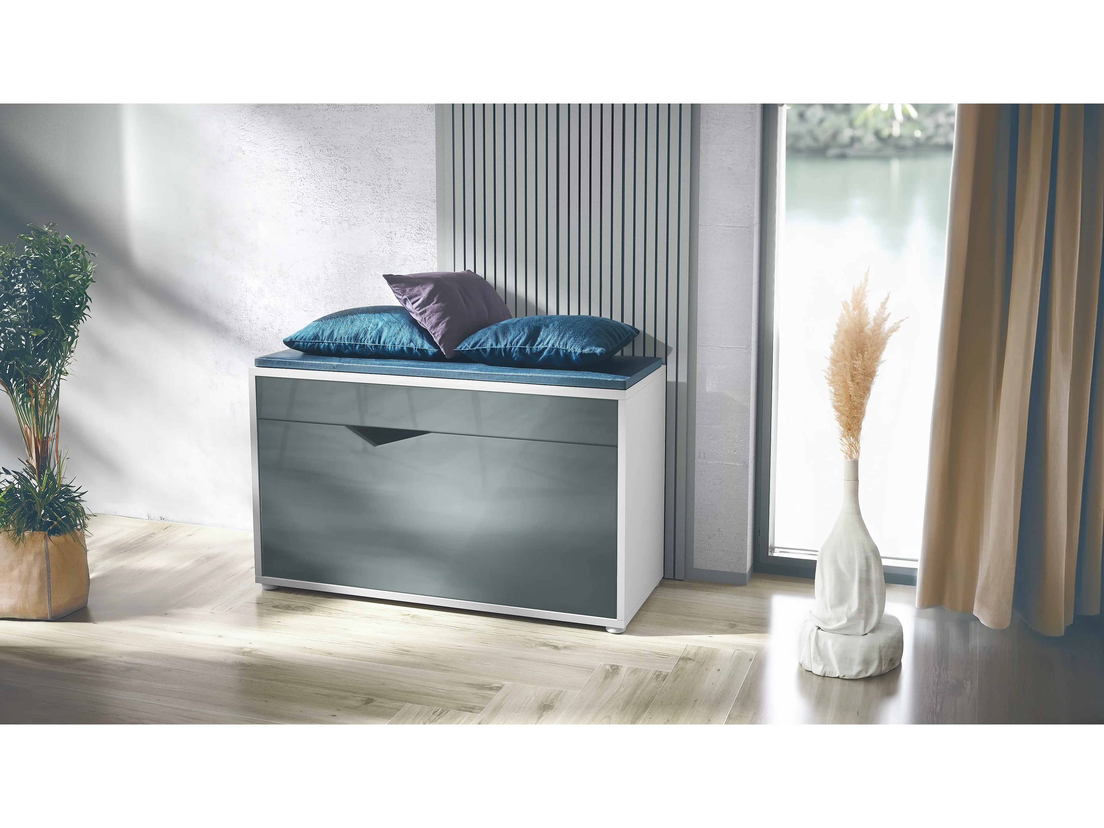 Banc à Chaussures Kolmio, Banc d'Assise pour 8 Paires de Chaussures, Étagère à Chaussures avec Siège, blanc mat/gris haute brillance (85 x 50 x 33 cm)