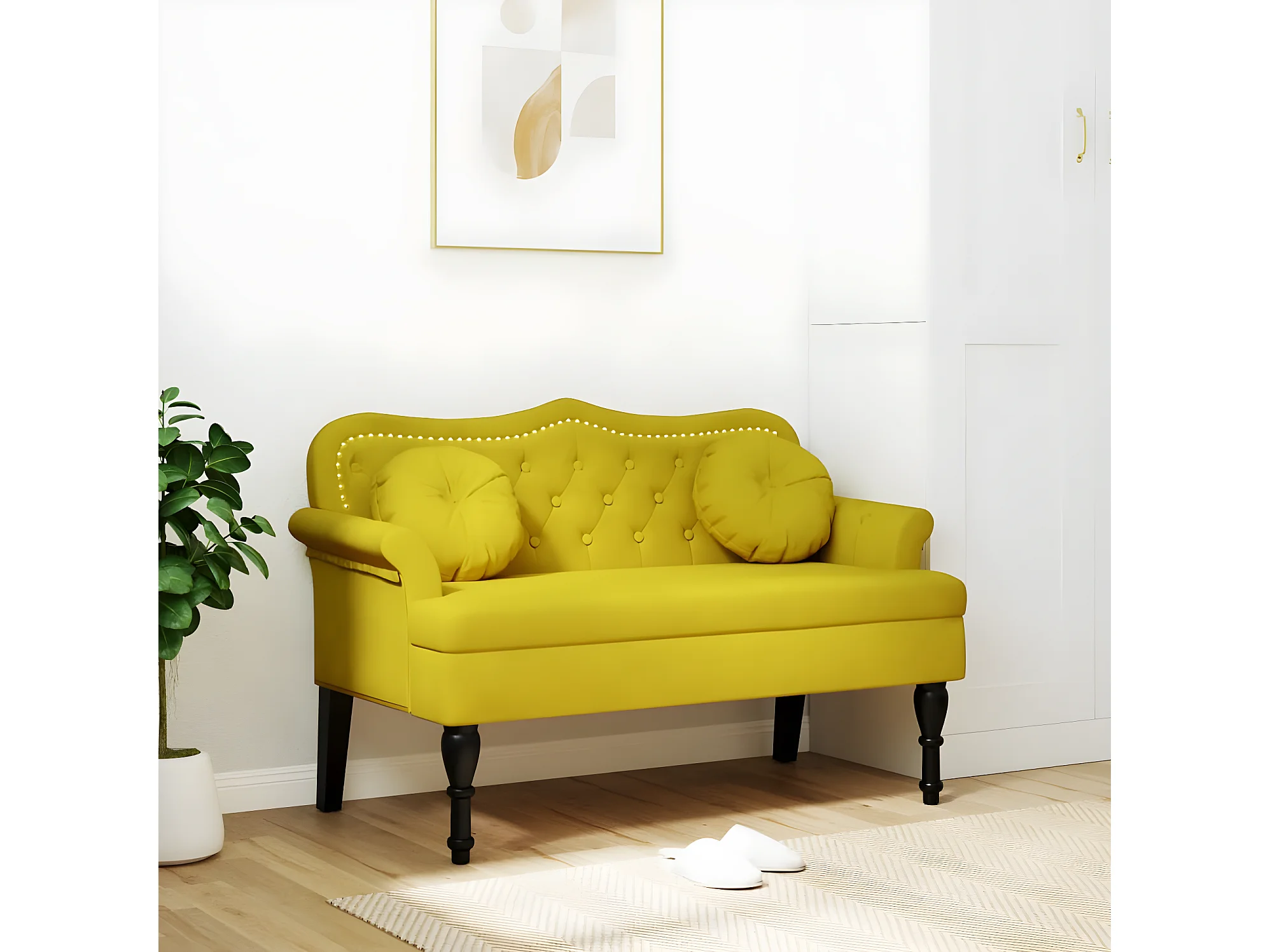 Banc avec coussins jaune 120,5x65x75 cm velours -ASAF42651