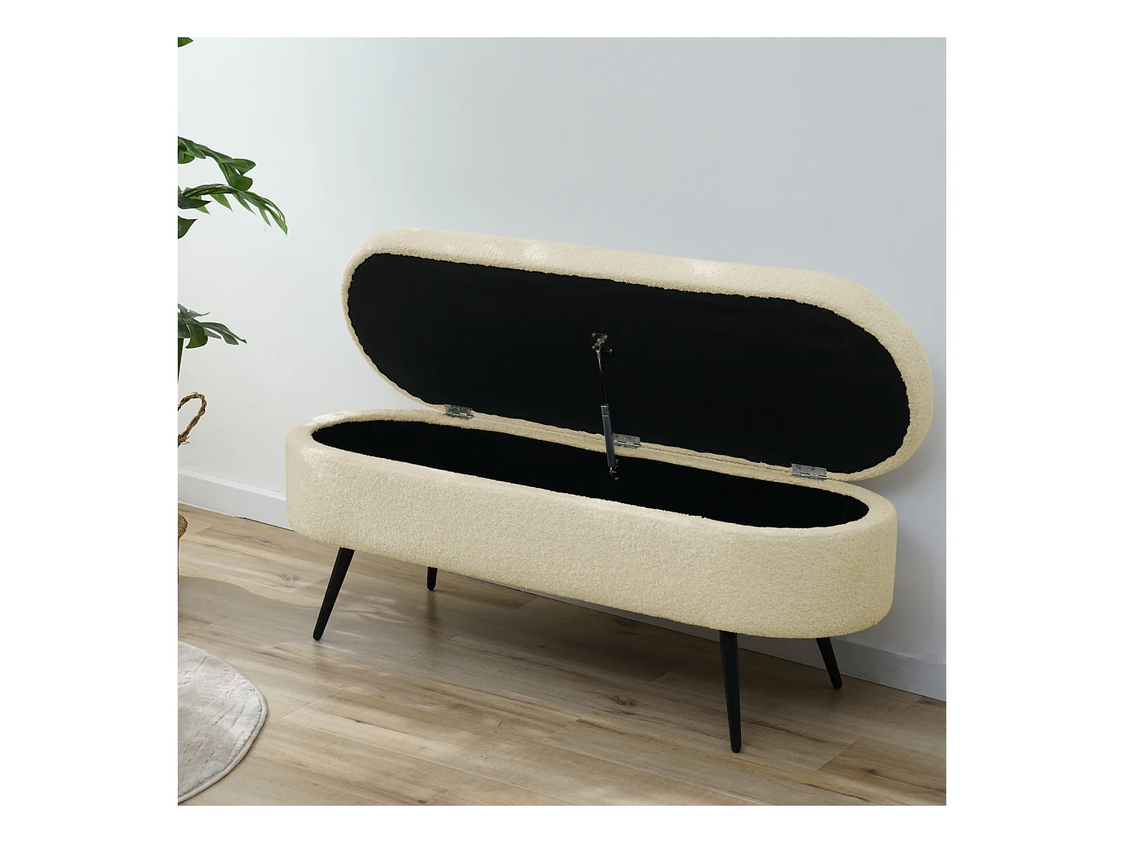 Banquette coffre de rangement 2 en 1 design scandinave dim. 110L x 40l x 43H cm cm piètement bois velours beige