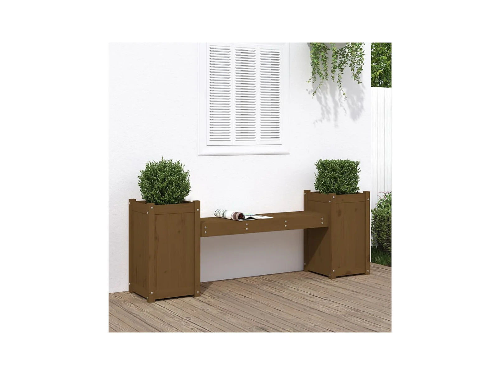 Banc avec jardinières marron miel bois massif de pin