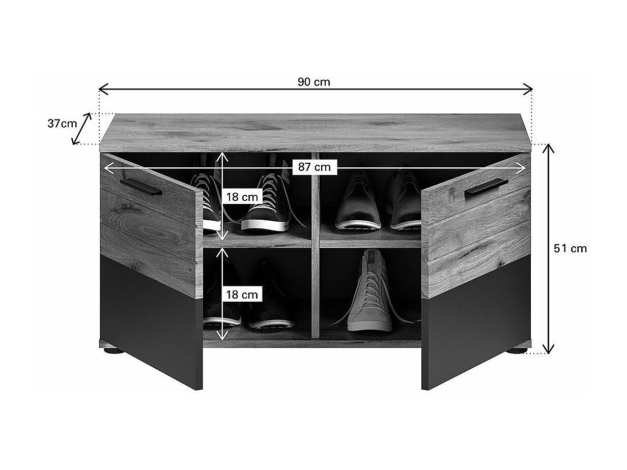 Banc avec rangement chaussures 2 portes L90 cm - MASON
