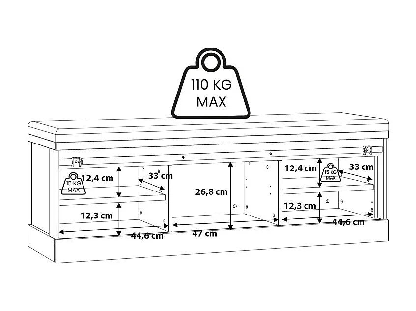 Banc bout de lit 145 cm 4 niches 1 porte décor chêne et noir – FARM