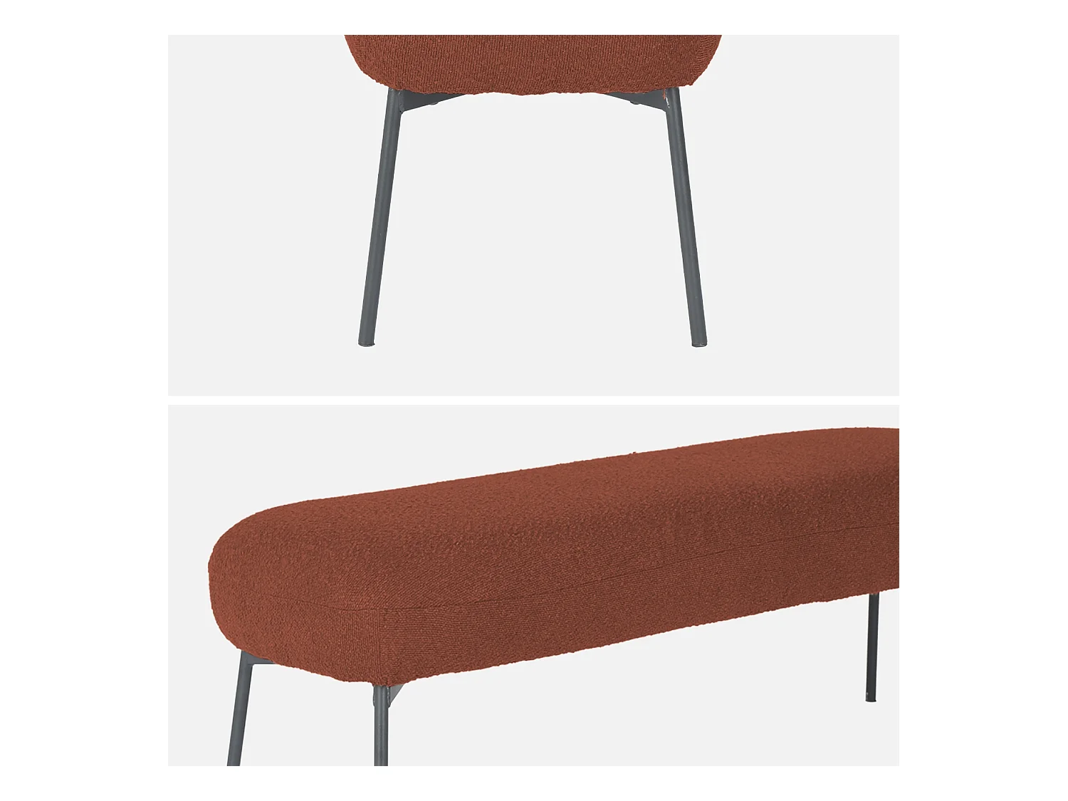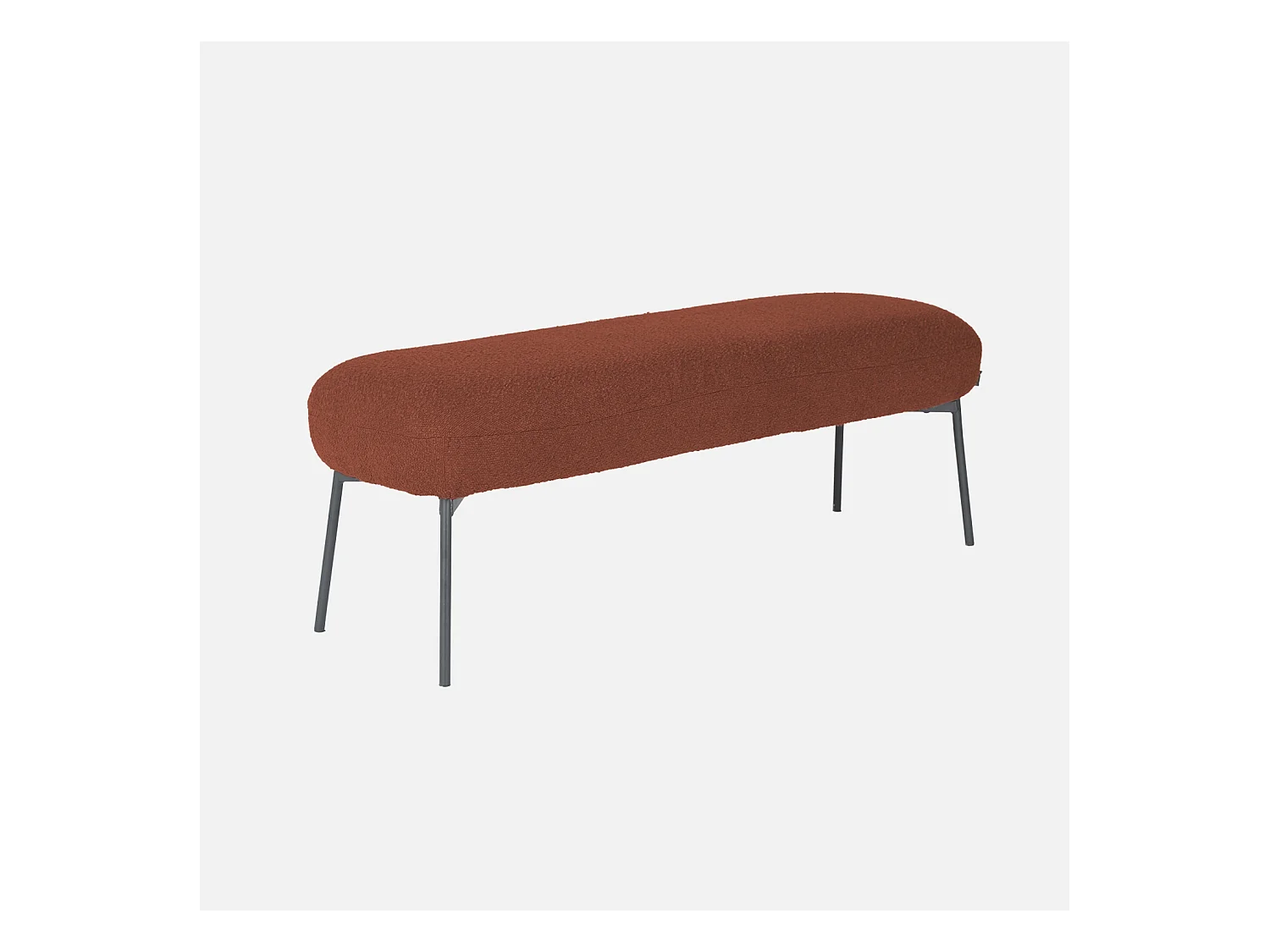 Banc. bout de lit avec revêtement bouclette texturée. rouille. pieds en métal noir. L 120 x P 41 x H 42.5cm