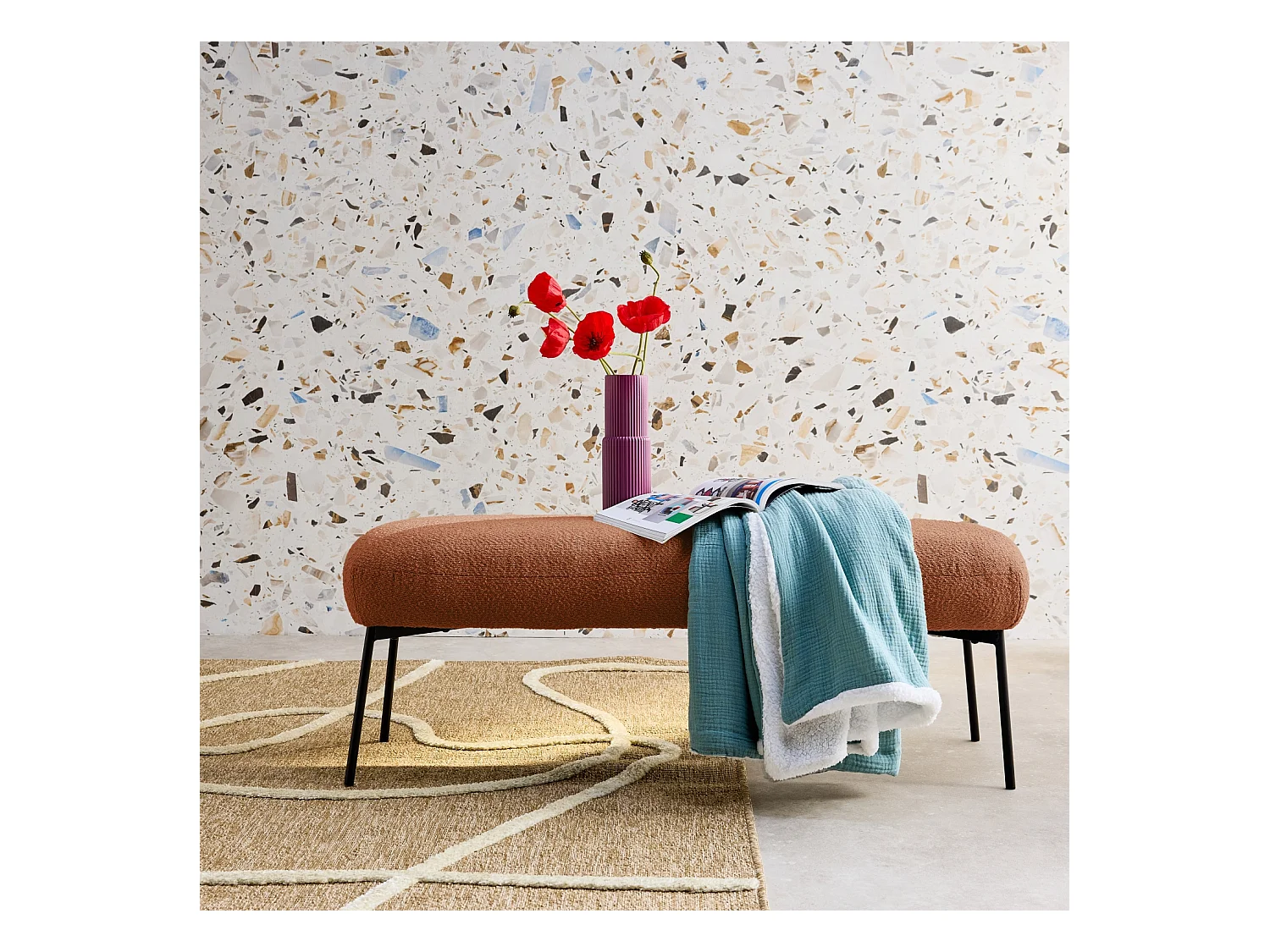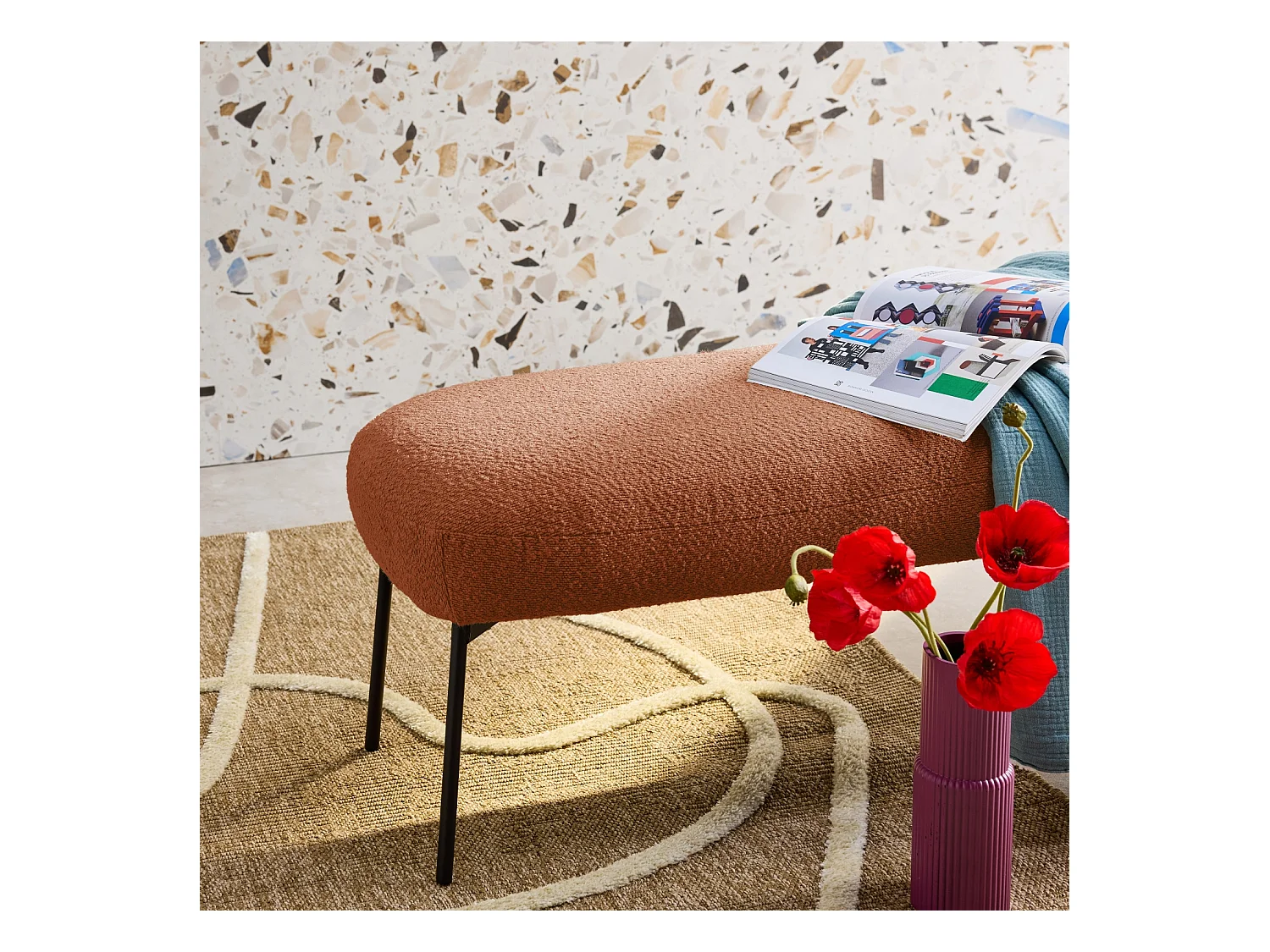 Banco en revêtement en moutonnet terracotta / orange 100x45 cm-Roma