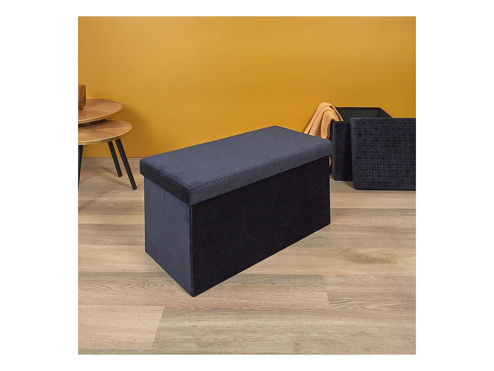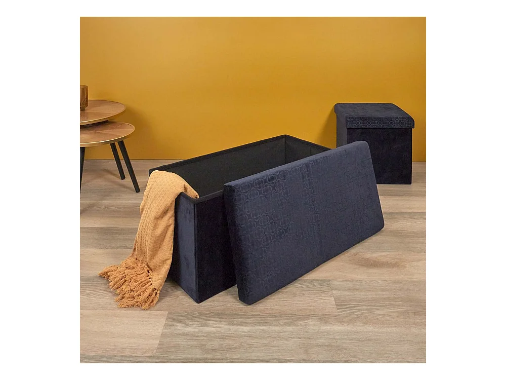 Coffre Banc Pliable Velours A Motif Bleu Bleu