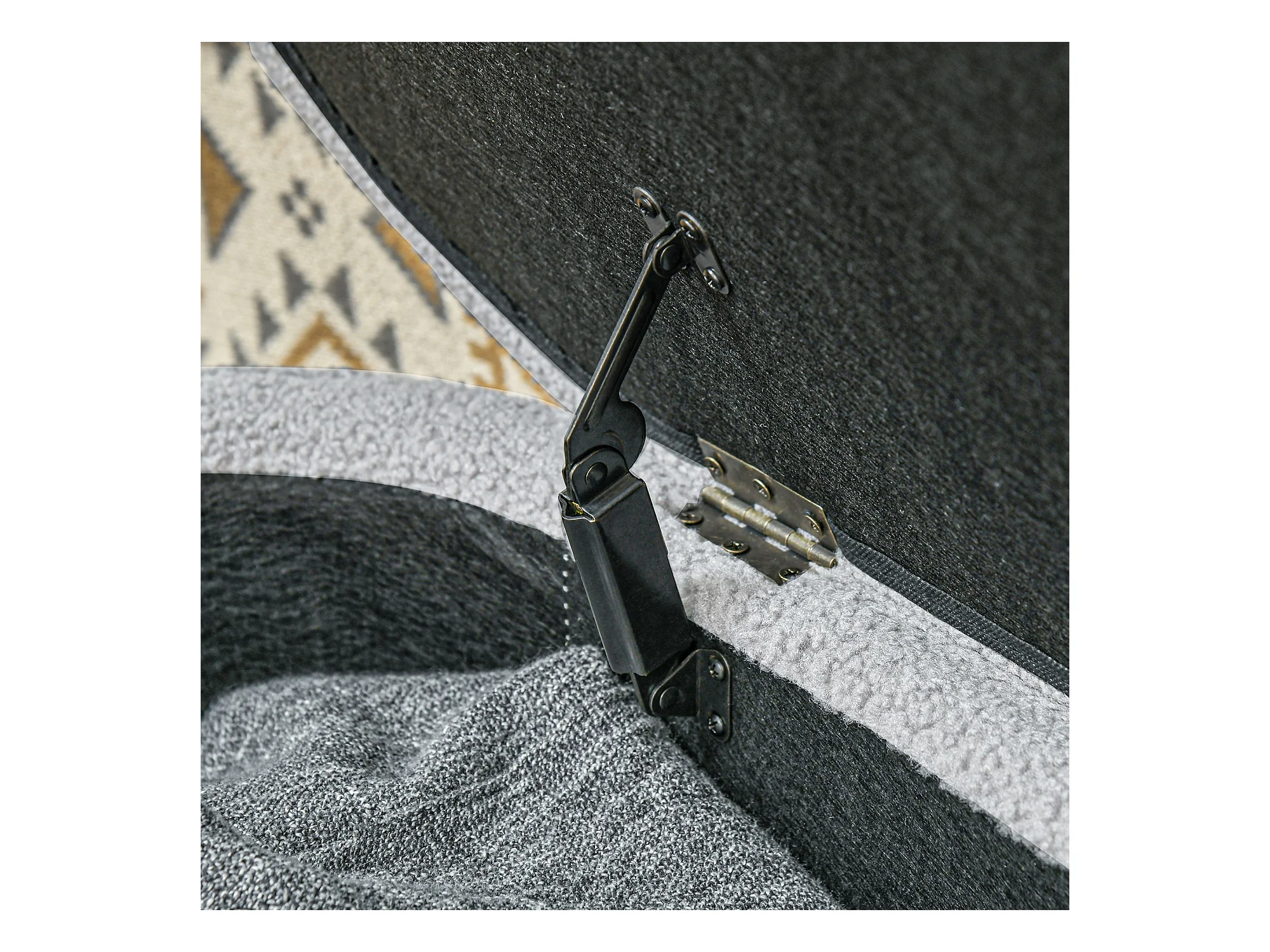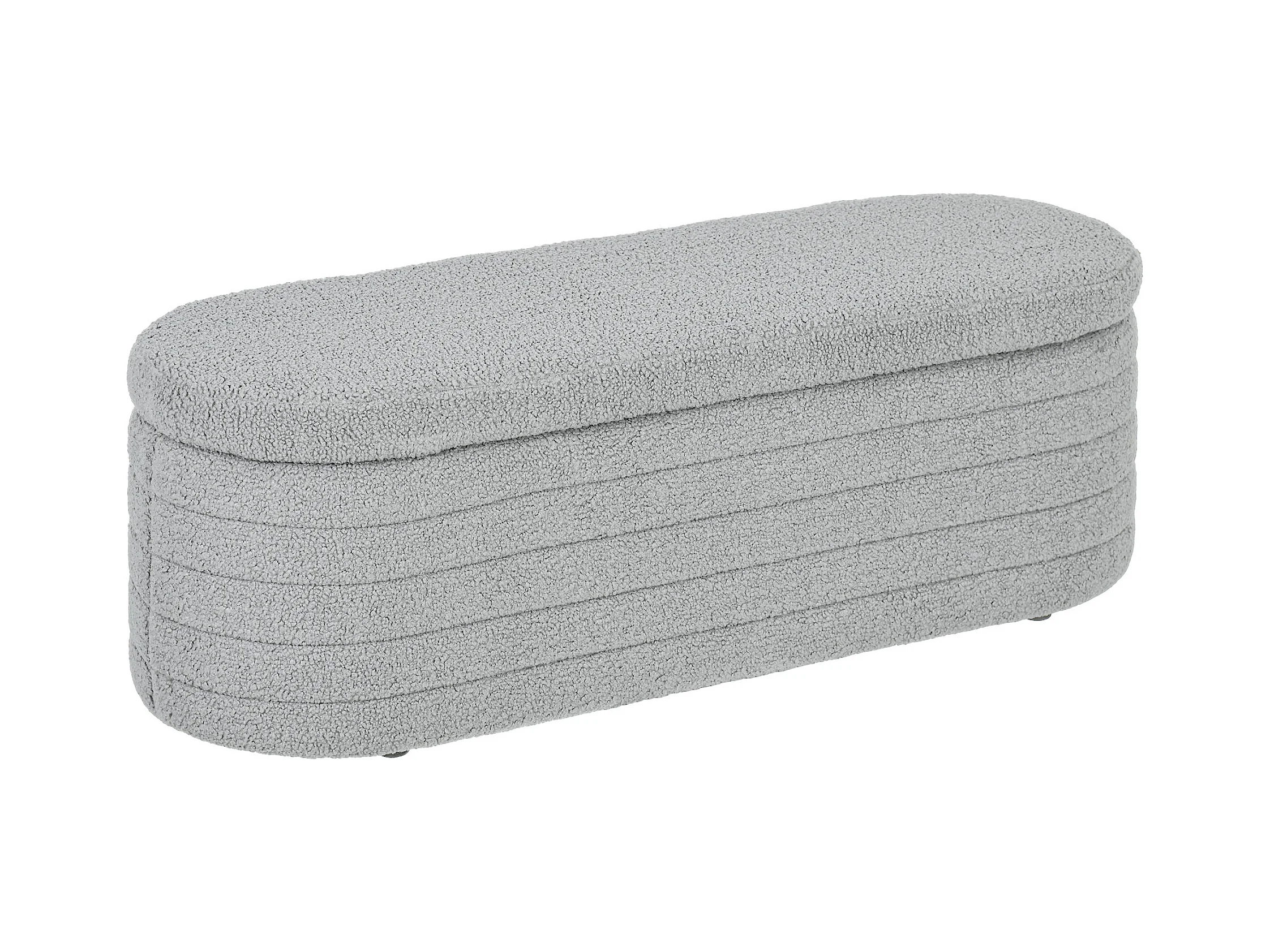 Banc de chambre avec rangement, pieds bois, tissu teddy gris clair (116x41x40.5cm)