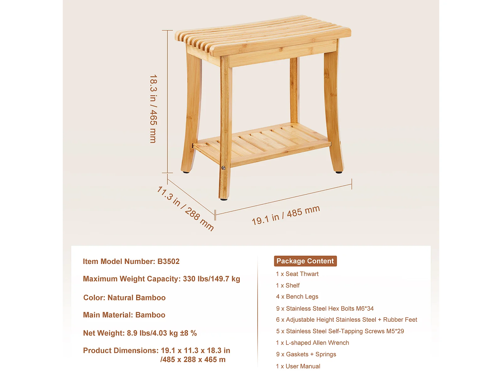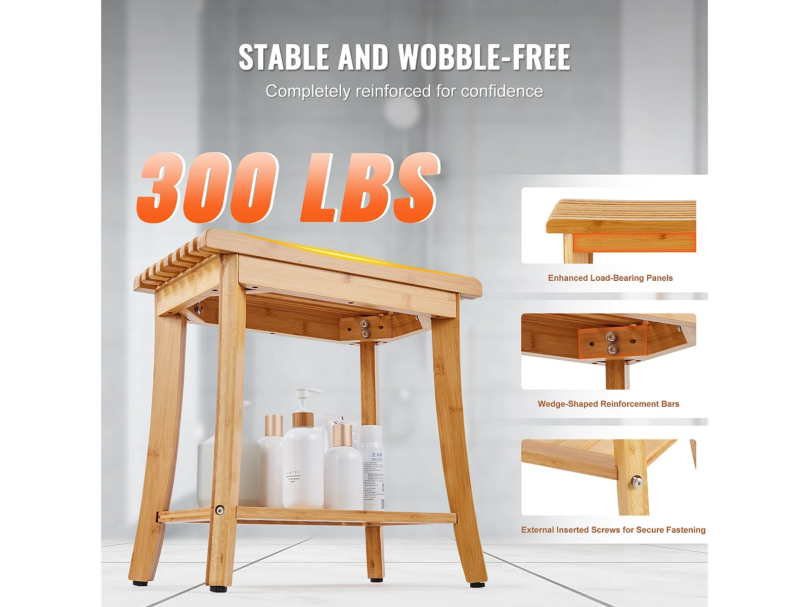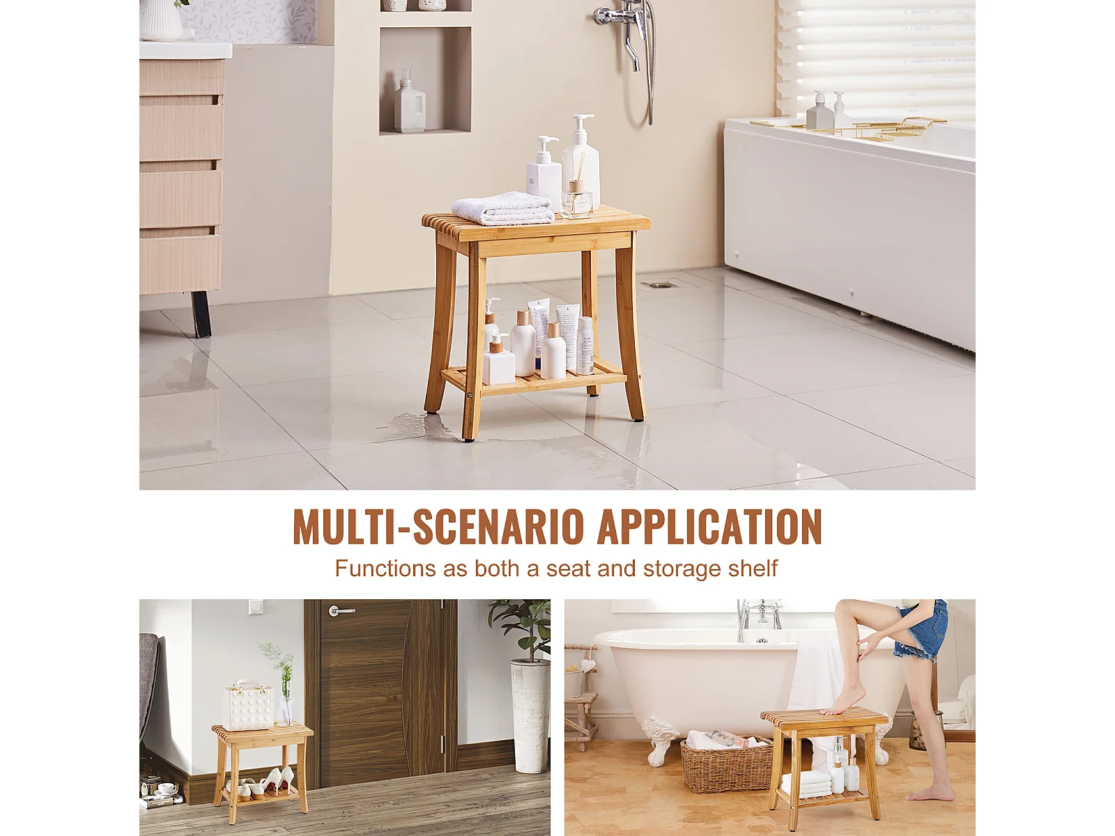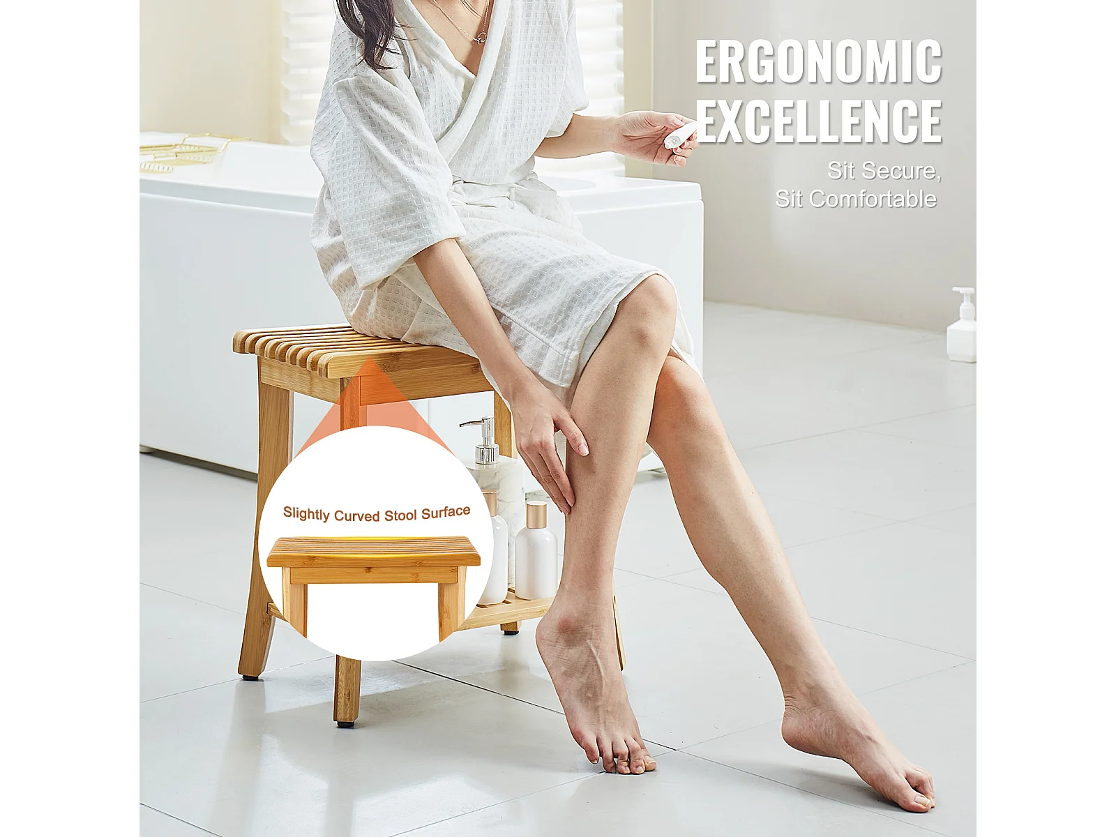 Banc de Douche en Bambou SucceBuy, 61 x 35 x 49 cm, Chaise pour Salle de Bain