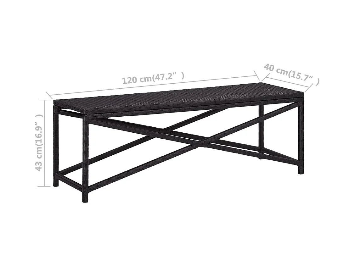 Banc de jardin 120 cm Résine tressée Noir REO74460