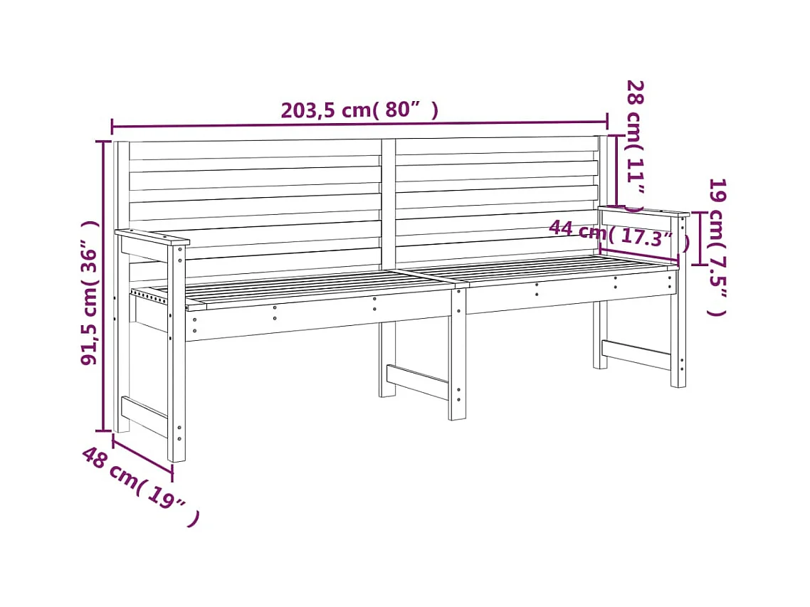 Banc de jardin 203,5x48x91,5 bois massif de pin