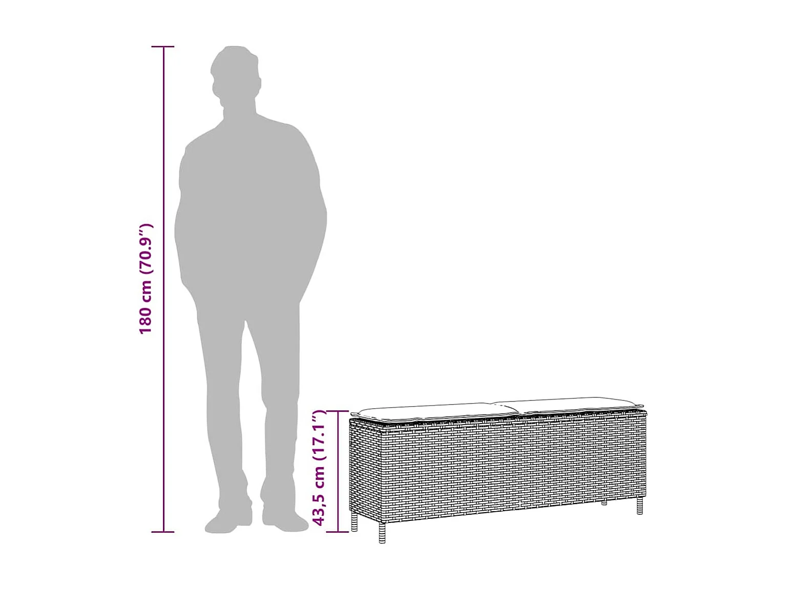 Banc de jardin avec coussin beige 110x40x44 cm résine tressée