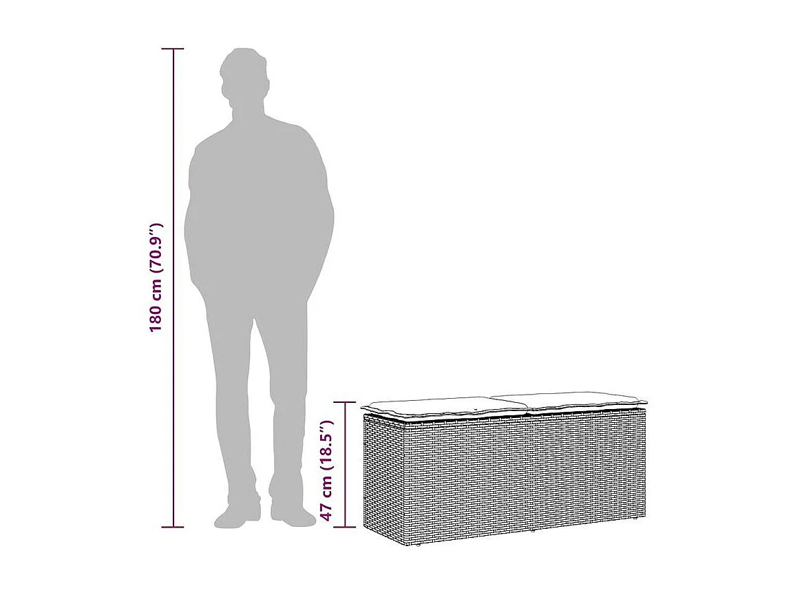 Banc de rangement et coussin marron 115x51x52 résine tressée
