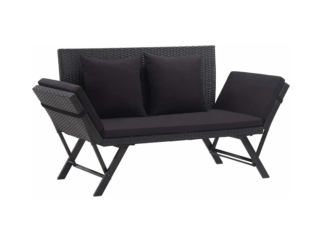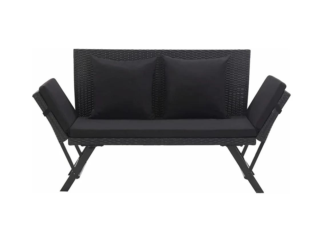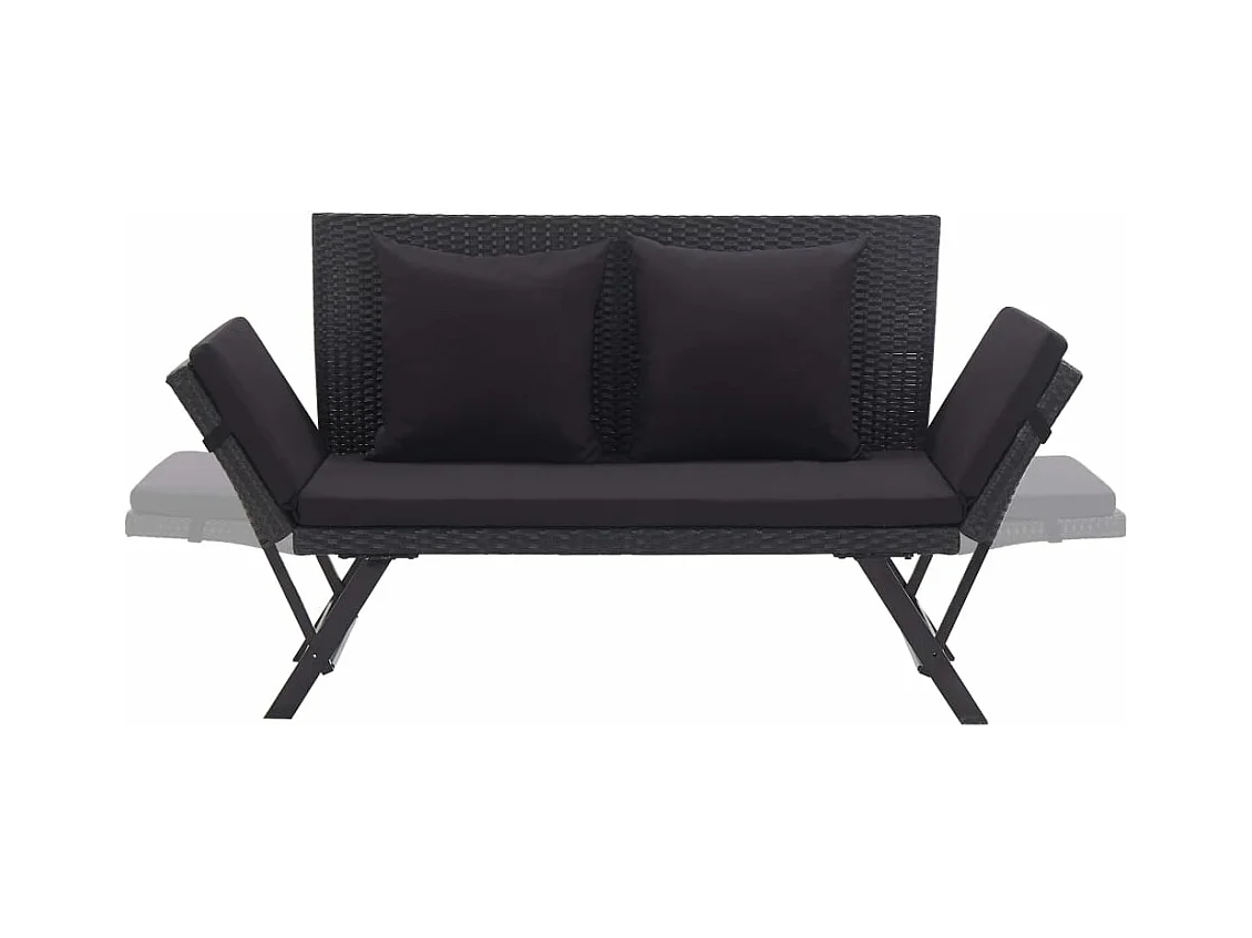Banc de jardin avec coussins 176 cm Noir Résine tressée REO28618