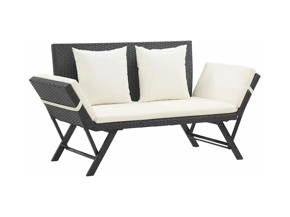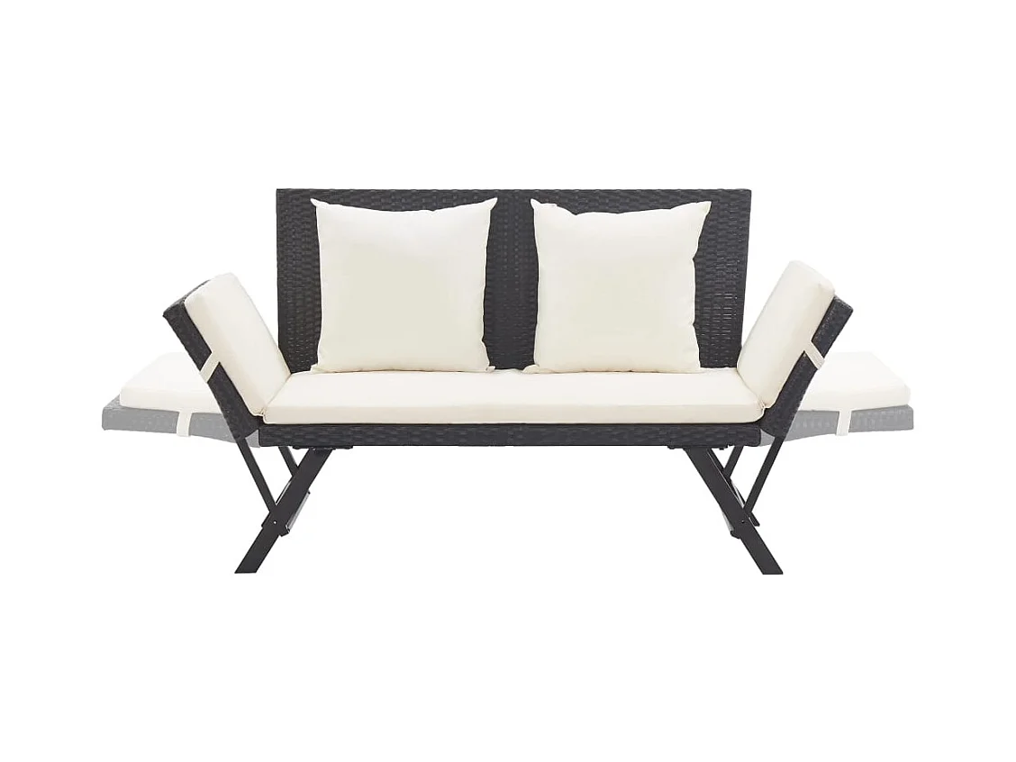 Banc de jardin avec coussins 176 cm Noir Résine tressée REO81557
