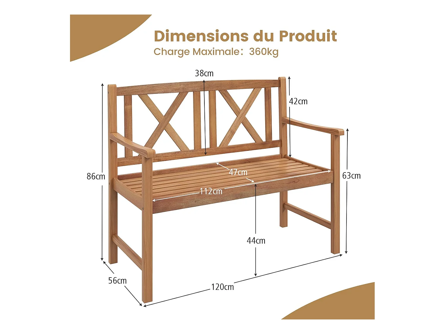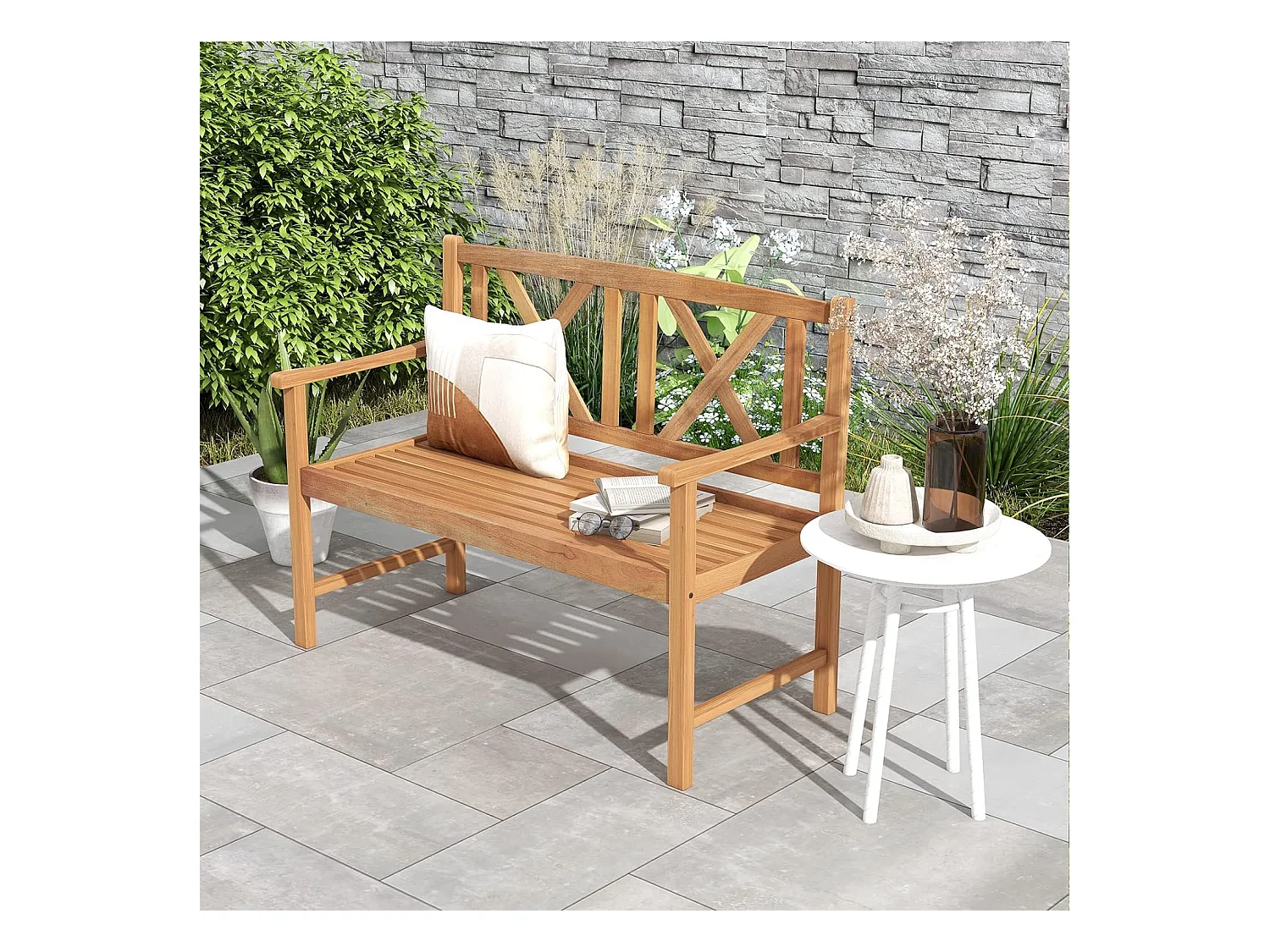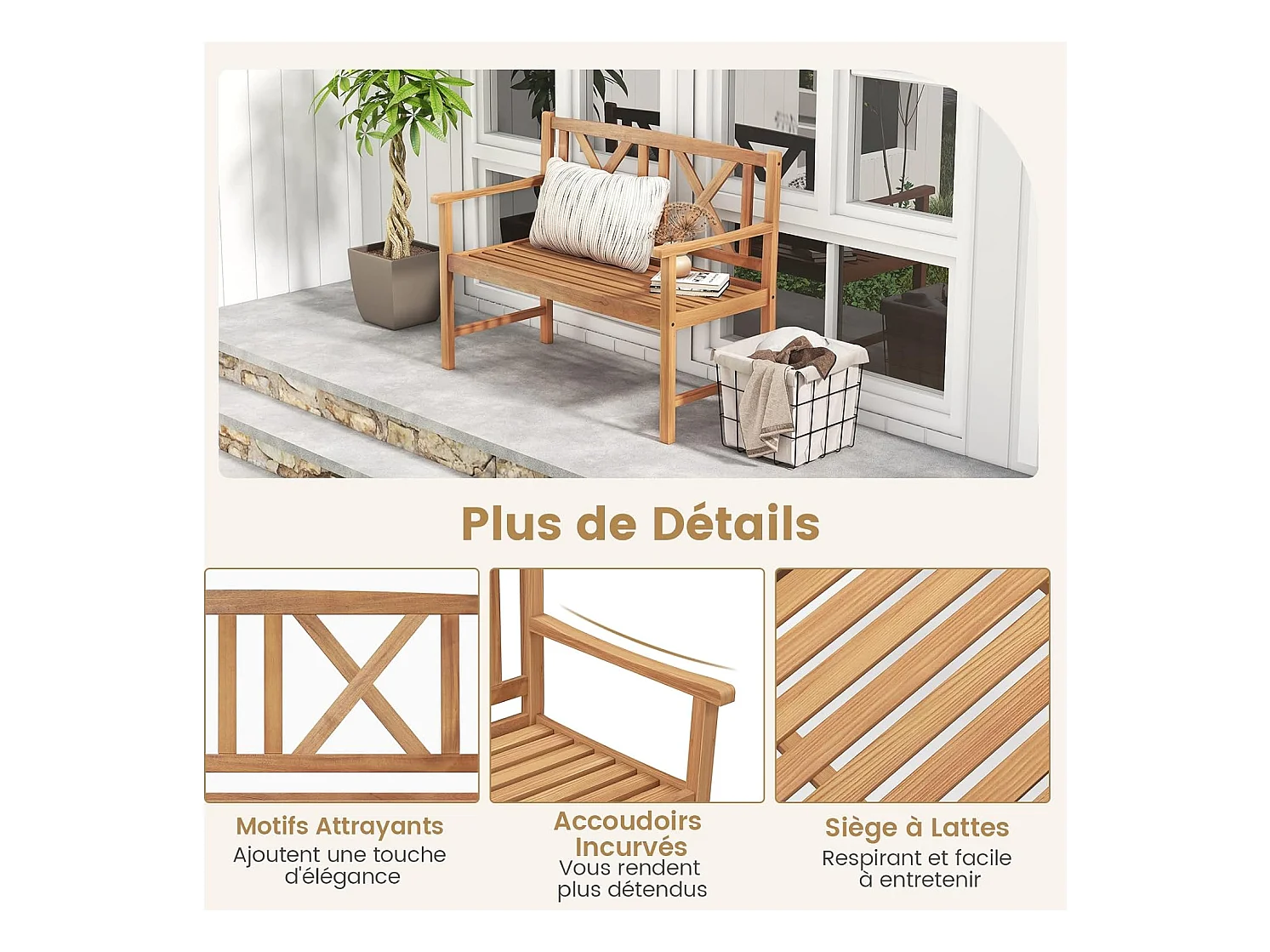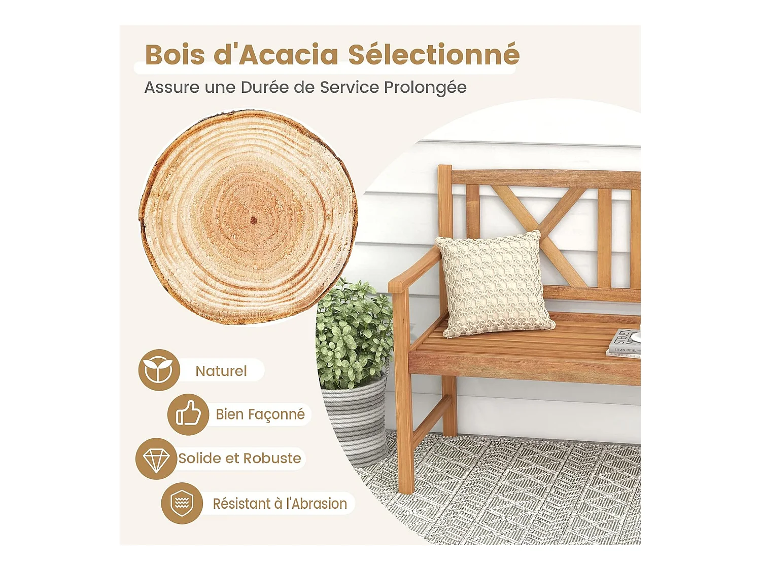 Banc de Jardin en Bois en Acacia pour 2 Personnes, Banquette de Jardin Extérieure à Lattes Charge 360KG, pour Patio Cour Balcon, 110 x 56,5 x 86 cm