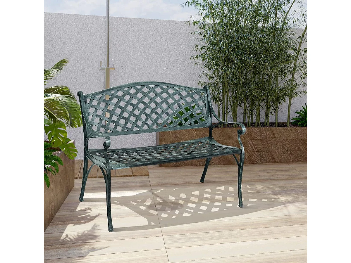 Banc de Jardin en Fonte d'Aluminium, Banc 2-3 Places avec Accoudoirs, Dossier et Design Ajouré, Charge Max 280KG, 103x64x83cm, pour Terrasse/Cour/Balcon/Pelouse/Parc
