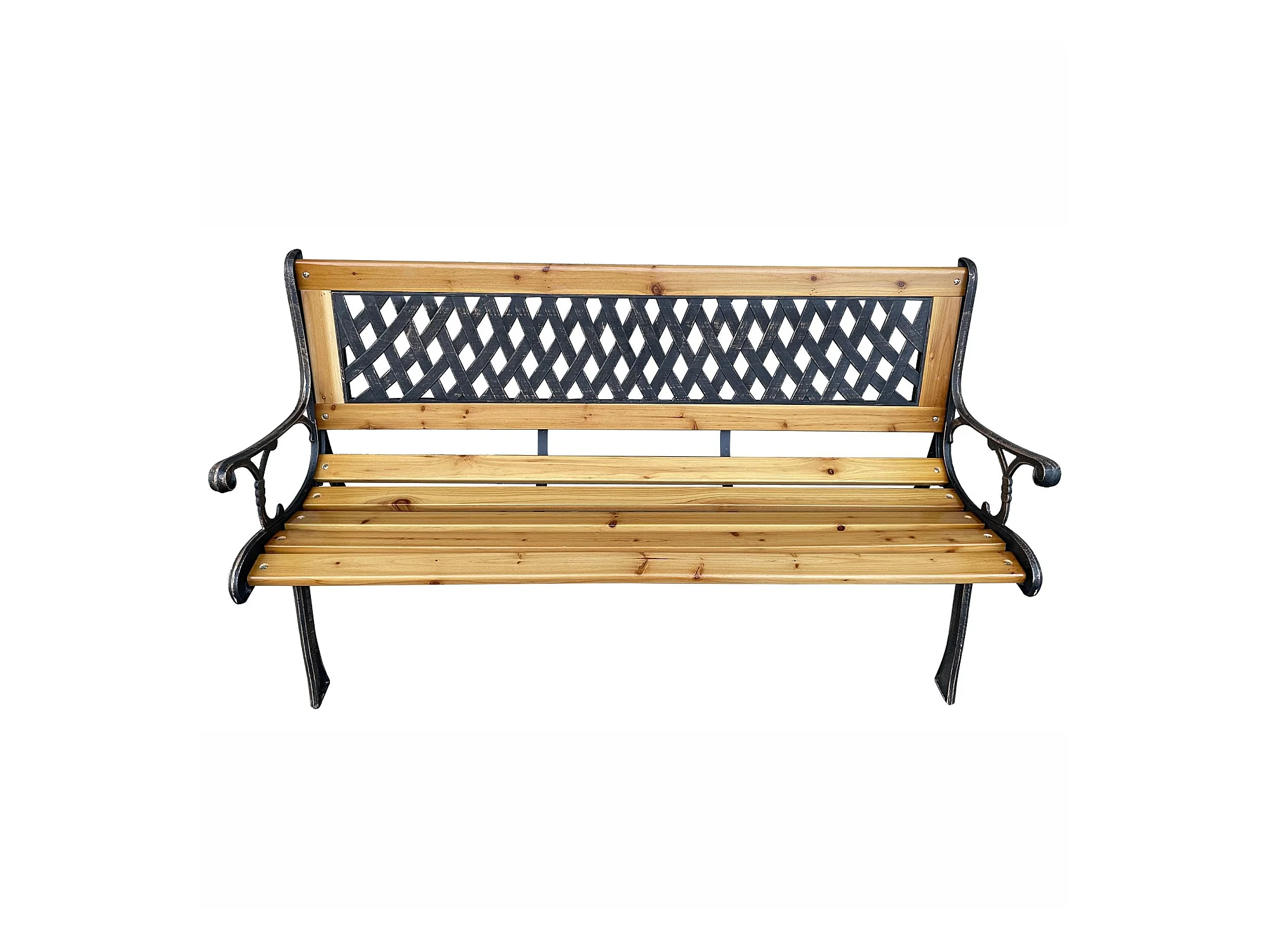 Banc de Jardin, Banc Extérieur en Bois, Banquette Jardin 3 Personnes avec Accoudoirs, Cadre en Métal Moulé, Motif de Fleur, Dossier en Plastique (Classique)