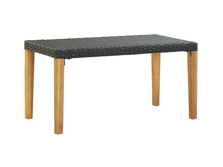 Banc de jardin résine tressée noire et pieds acacia Lakt 120cm