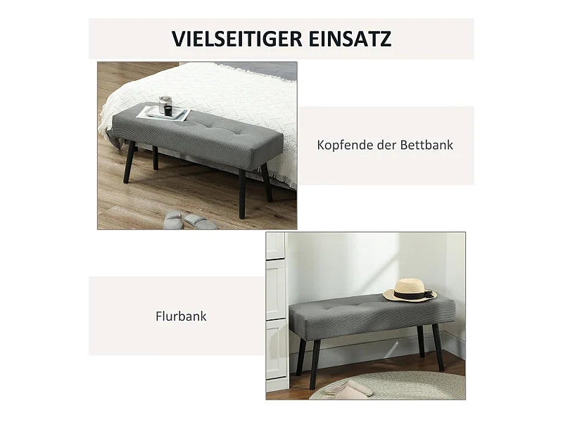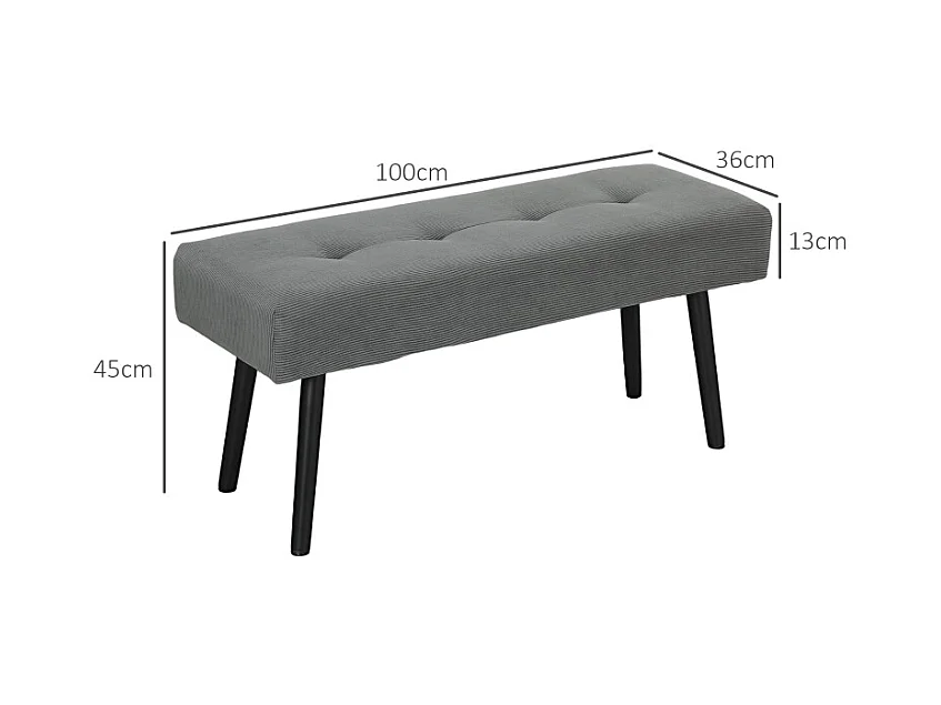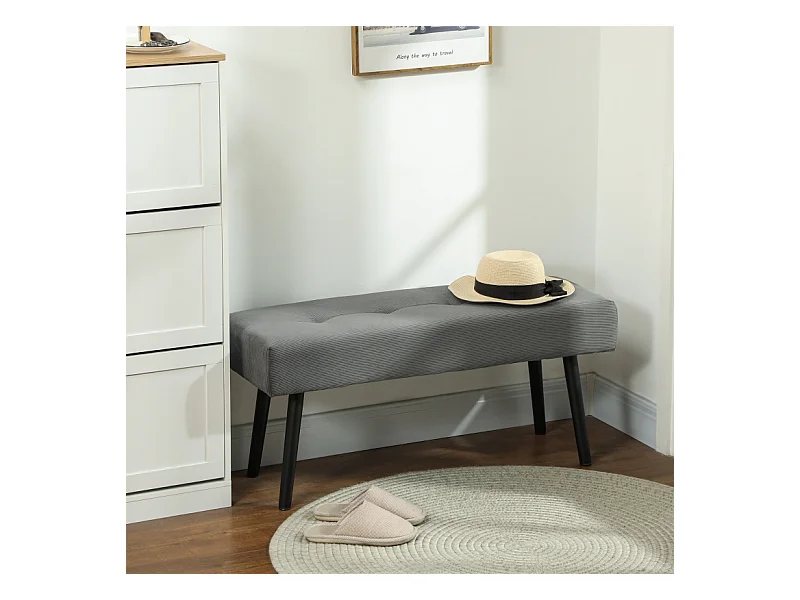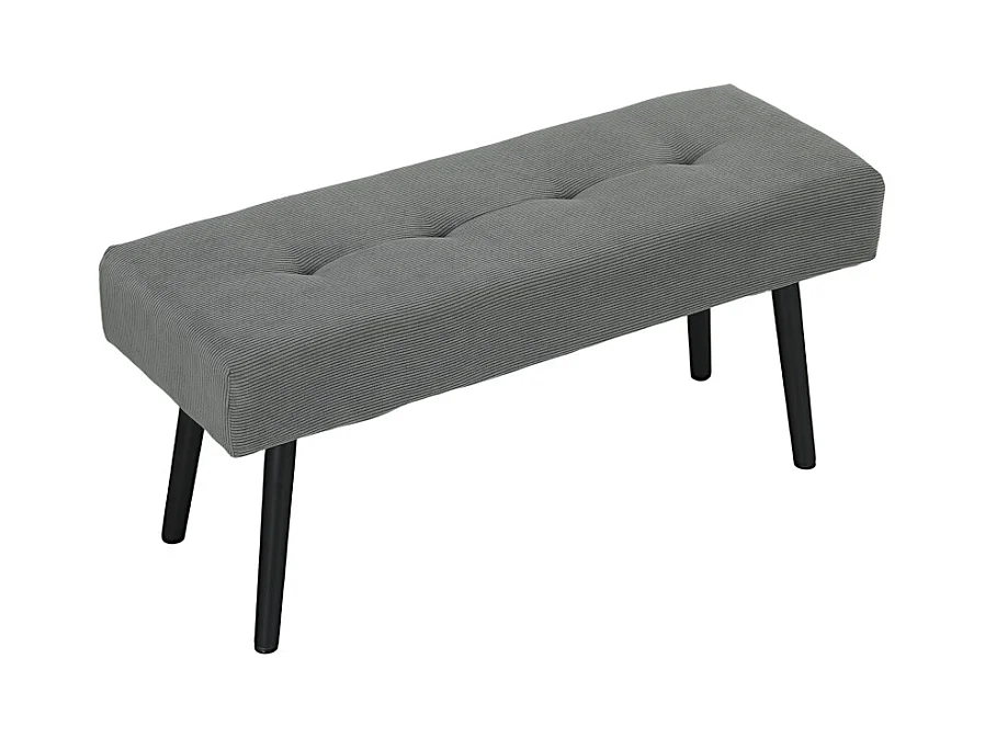 Banc vintage en lin, avec boutons décoratifs, pieds en bois, gris (80x40x43 cm)