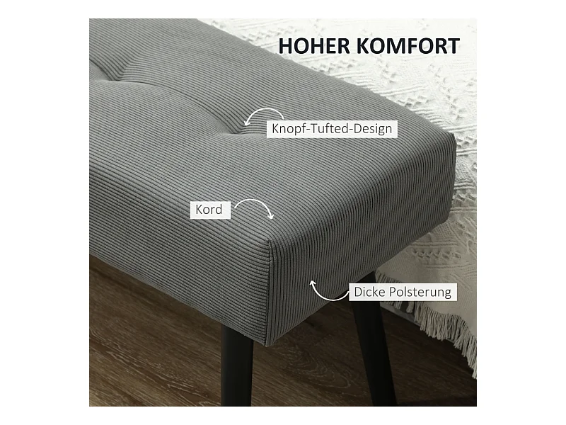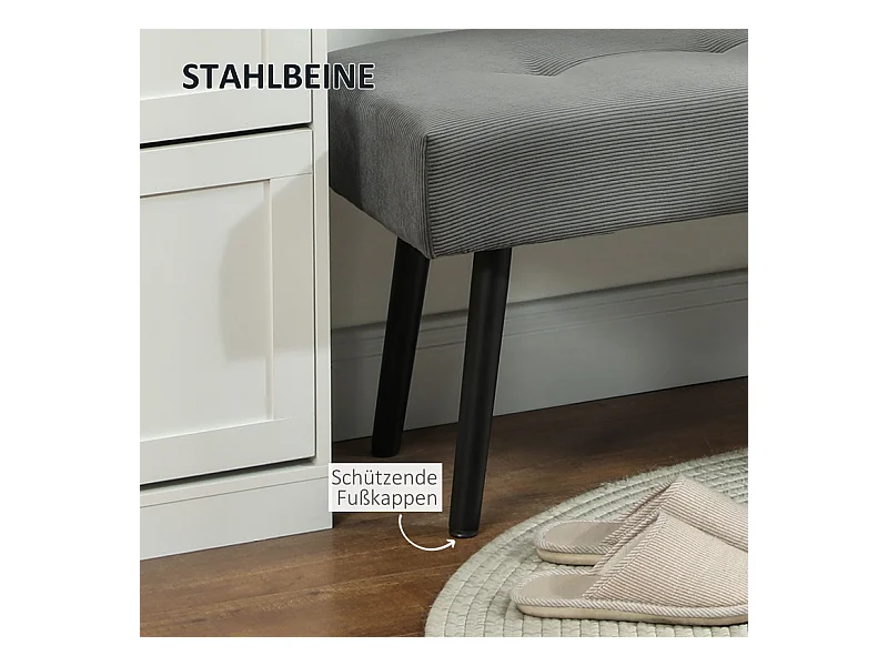 Banc de rangement en lin, avec pieds en acier, capacité 200 kg, gris (120x44x45.5 cm)