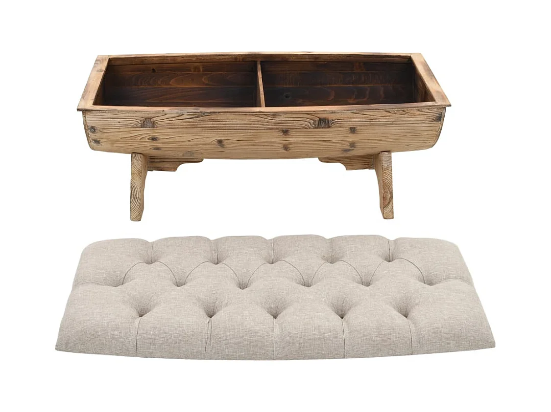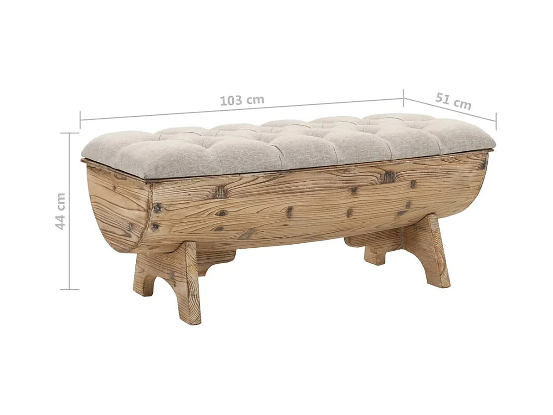 Banc de rangement Bois massif et tissu 103 x 51 x 44 cm